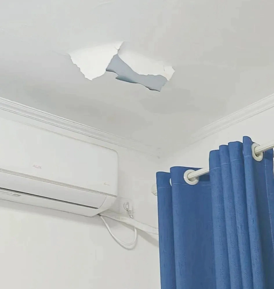 7月3日下午,成都市再次下起暴雨,蒋先生发现除了之前的漏水点以外,卧室天花板、窗台、墙壁等多处也开始大面积漏水。“天花板墙皮直接掉在床上,我还拿了几个盆去接水。”看着家中变成“水帘洞”,蒋先生十分生气,于是再次与该中介进行联系,要求对方给出说法。“之前对方承诺天晴后就会把漏水点修好,中间也有几天并没下雨,但是根本没人来维修。”蒋先生介绍,自己的工作需要居家办公,因此白天基本在家中,期间并未听见有人上房顶进行维修施工。
