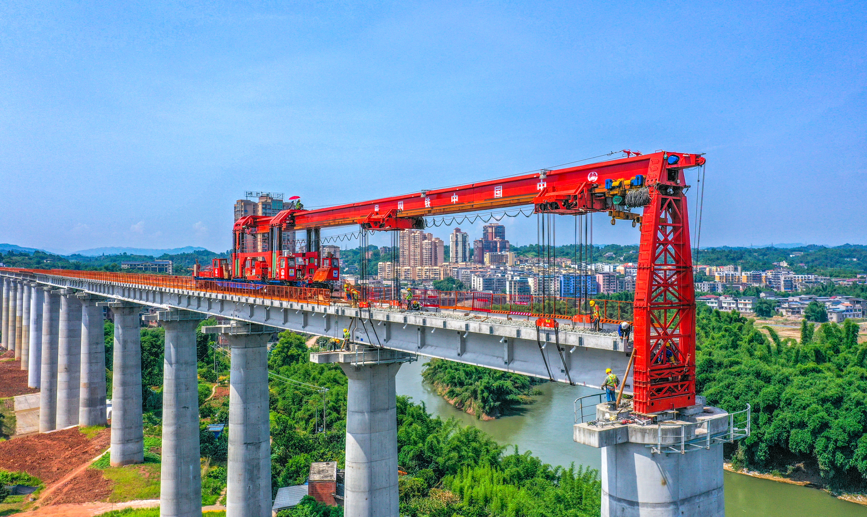 隆黄铁路隆叙段扩改项目新护国特大桥架梁现场