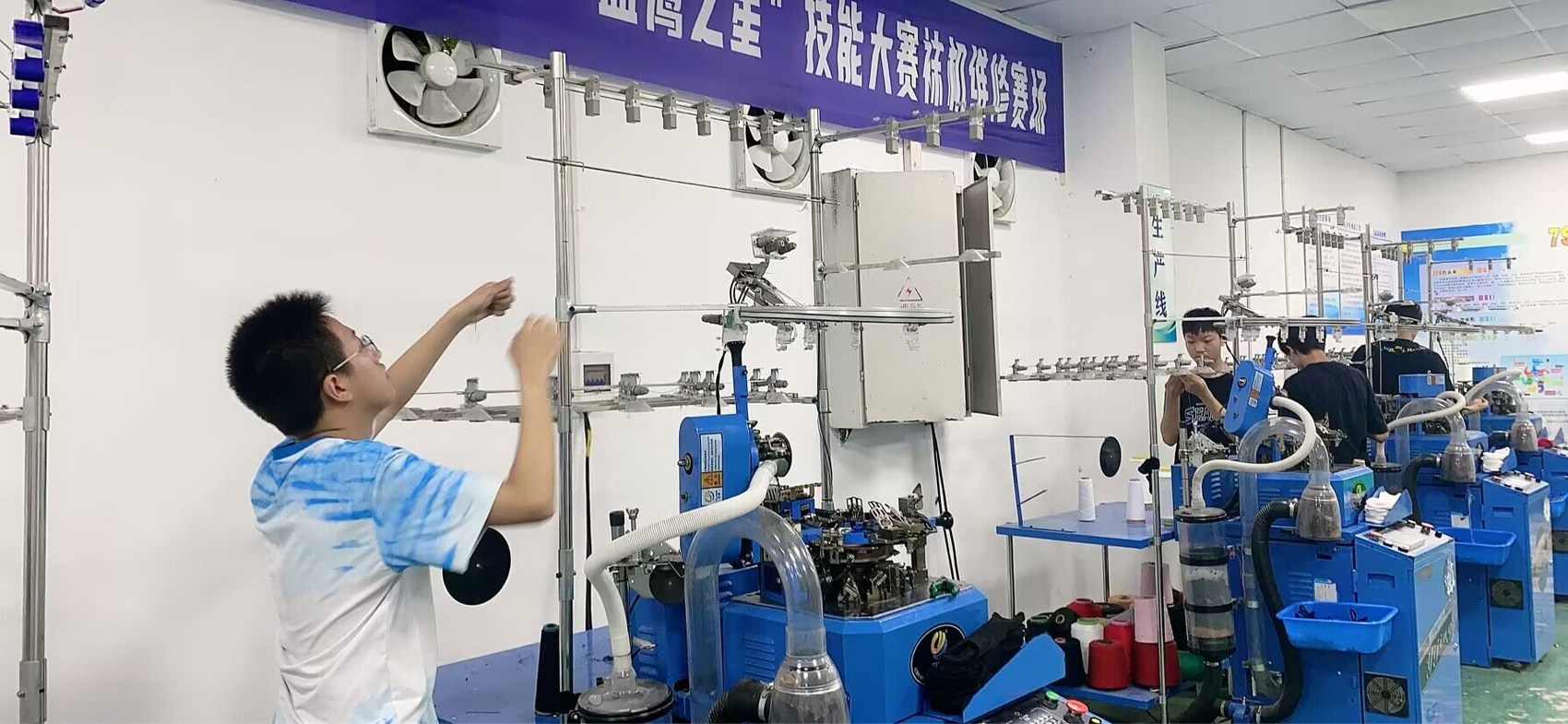 袜机维修专业学生正在实训
