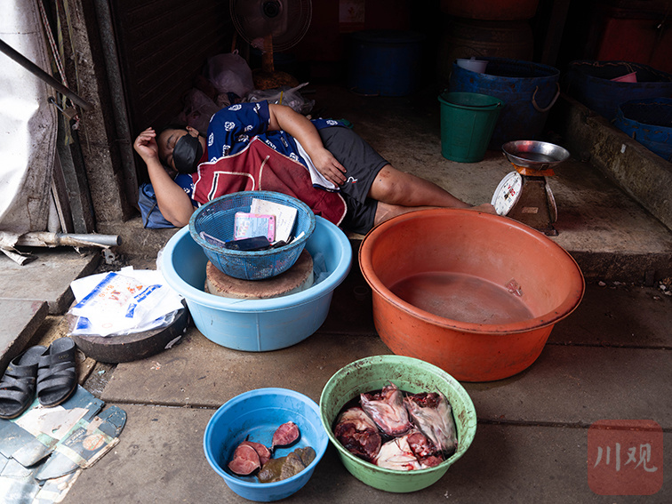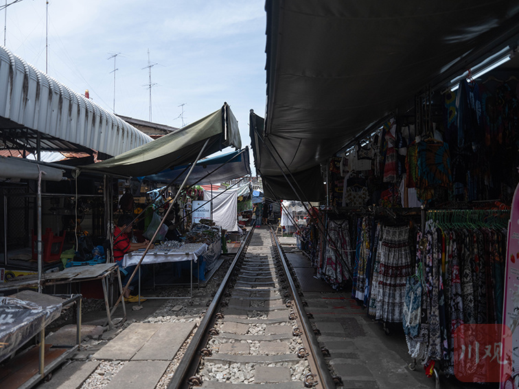 美功铁路市場,商贩带着未售完的尾货午休;1905 年铁路修建未征地,摊贩拒绝搬迁,最终形成火车市集 “铁轨即过道” 的共生模式。