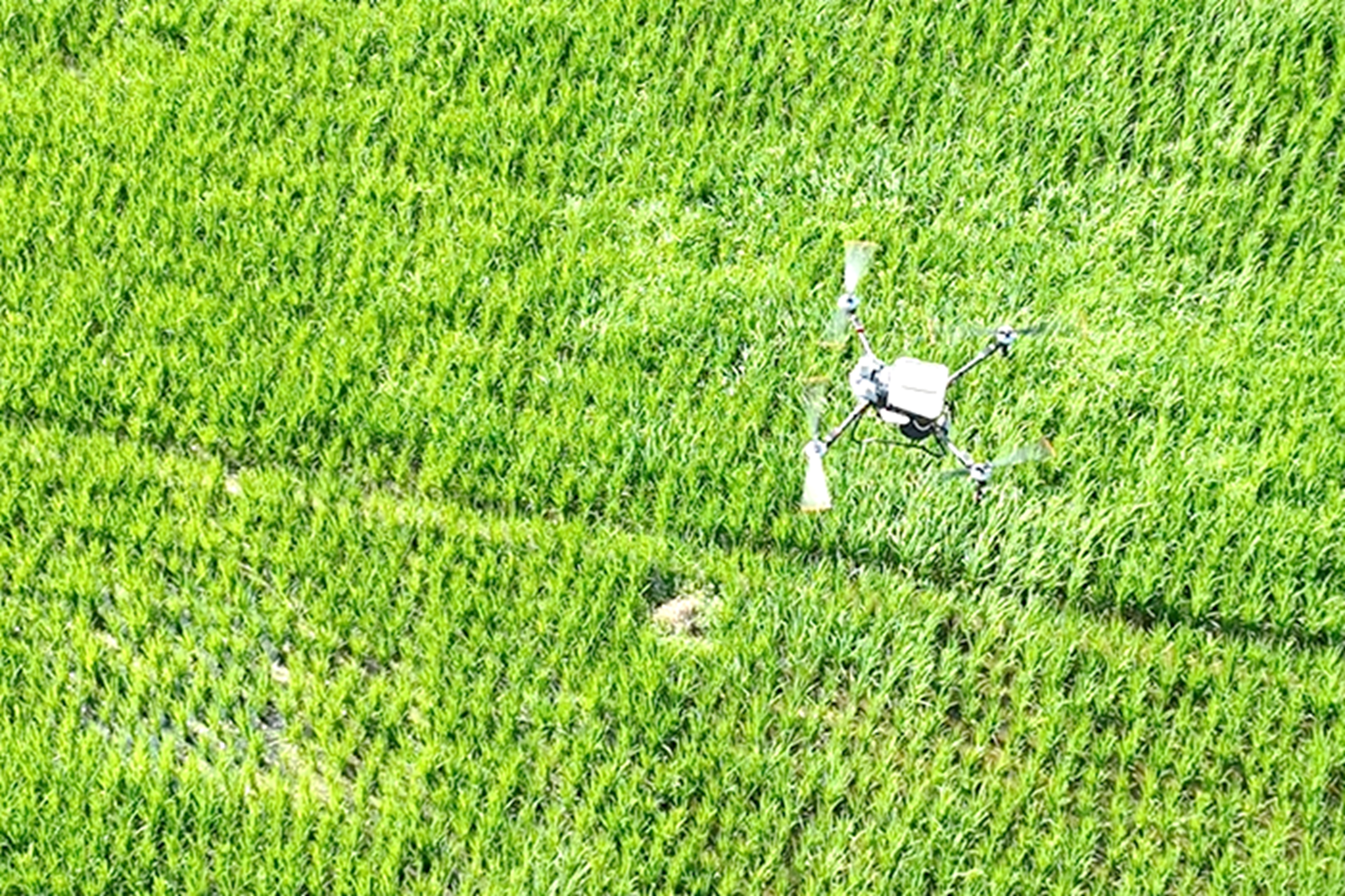 无人机投喂稻虾。李腾 摄