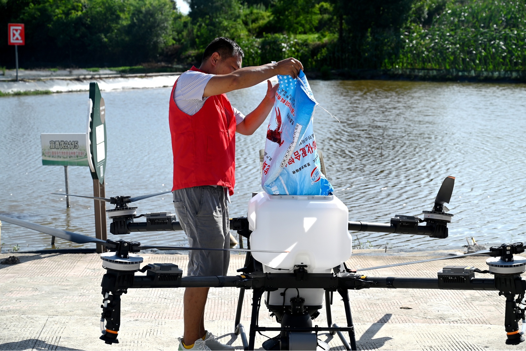 “依靠无人机搭载的高精度定位系统和智能控制系统,操控人能够根据养殖密度、水质条件等外在因素提前设定饲料投放量,实现精准化、智能化饲料投喂,尽可能让每一只小龙虾吃得饱、吃得好。”张祖强说,对比来看,传统的人工投喂方式则存在投喂效率低、浪费饲料、投喂不均匀等问题。
