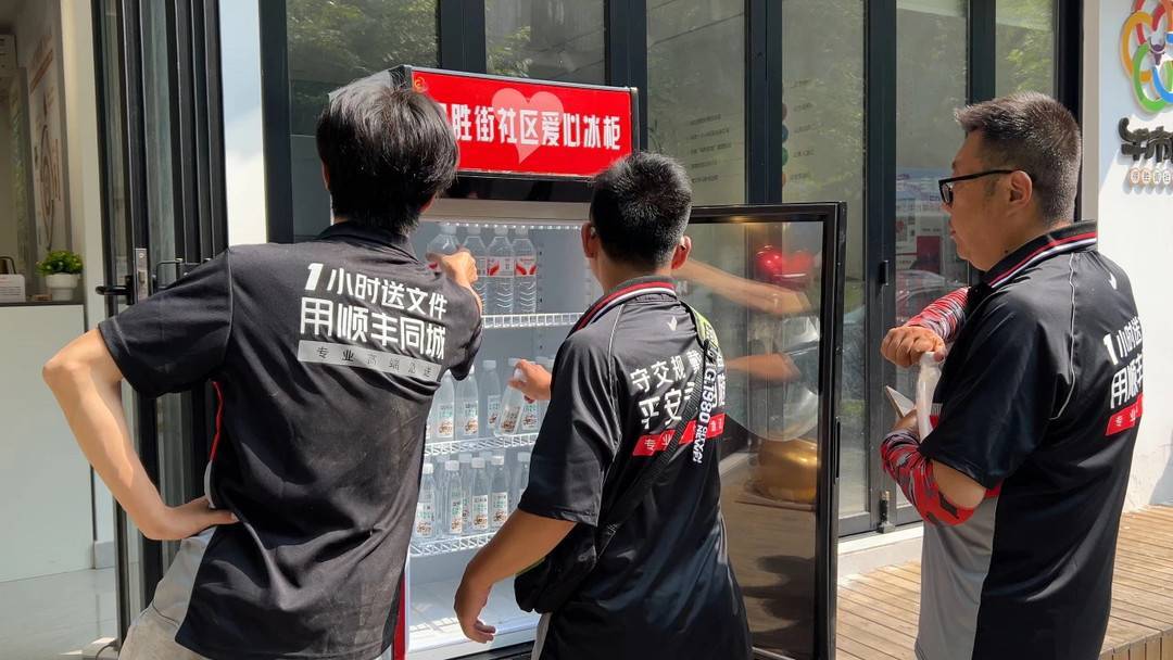 为应对持续高温天气,保障新就业群体身心健康,近期,牛市口街道依托党群服务中心、“锦小牛·同心小站”、社区微网实格智慧治理中心等多元阵地,布局启用了7台“爱心冰柜”,为高温下作业的新就业群体与户外劳动者送去清凉。而在华熙LIVE·528商圈,三圣街道栀子街社区以 服务“在路上” 为核心理念,将服务点精准设置在商圈电瓶车临时停放点旁,利用骑手们送餐换电的间隙提供车辆安全检修、防暑降温送清凉等“一站式”服务。