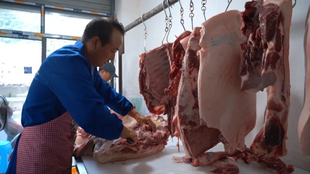 为进一步深耕本地市场,让优质猪肉直达消费者,万胜家庭农场在丹巴县城注册开设了鲜肉直营店。凭借过硬的猪肉品质和亲民的价格,店铺迅速赢得当地居民信赖,成为市场新宠,每日订单络绎不绝。眼下,每天清晨7点,县城三岔河鲜肉店内工作人员便忙碌起来,熟练地为顾客称重、切块。柜台里色泽鲜亮、纹理清晰的鲜肉深受老主顾青睐,往往不到中午便销售一空。贺永花表示,店铺不仅提供线下选购,也接受大量线上预订。当天的最后一批猪肉,会根据客户要求完成分割、打包,随后装车配送上门。