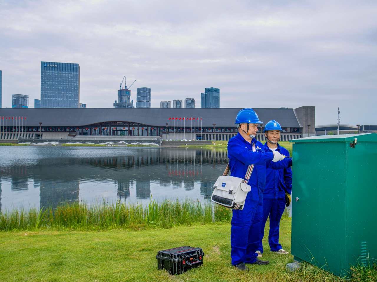 5月16日,国网天府新区供电公司直管区供电中心世运会保电专班人员在天府国际会议中心开展用电检查。