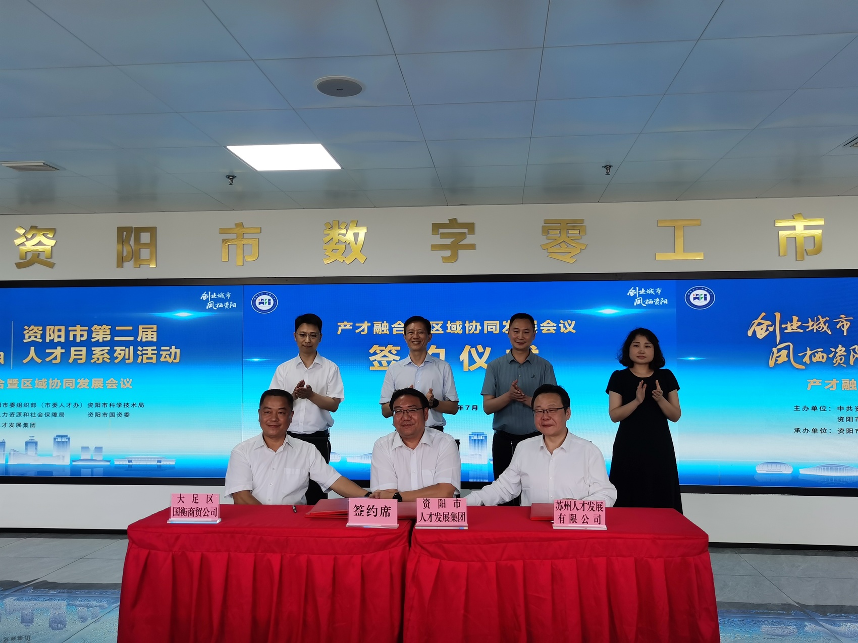 7月24日,在第二届人才月系列活动“创业城市·凤栖资阳”——产才融合暨区域协同发展会议上,资阳市人才发展集团正式授牌,并通过与科研院所、企业、高校建立合作,携手实施一批有影响力、有潜力、有市场的科技项目,推动人才引领资阳科技创新和产业创新。