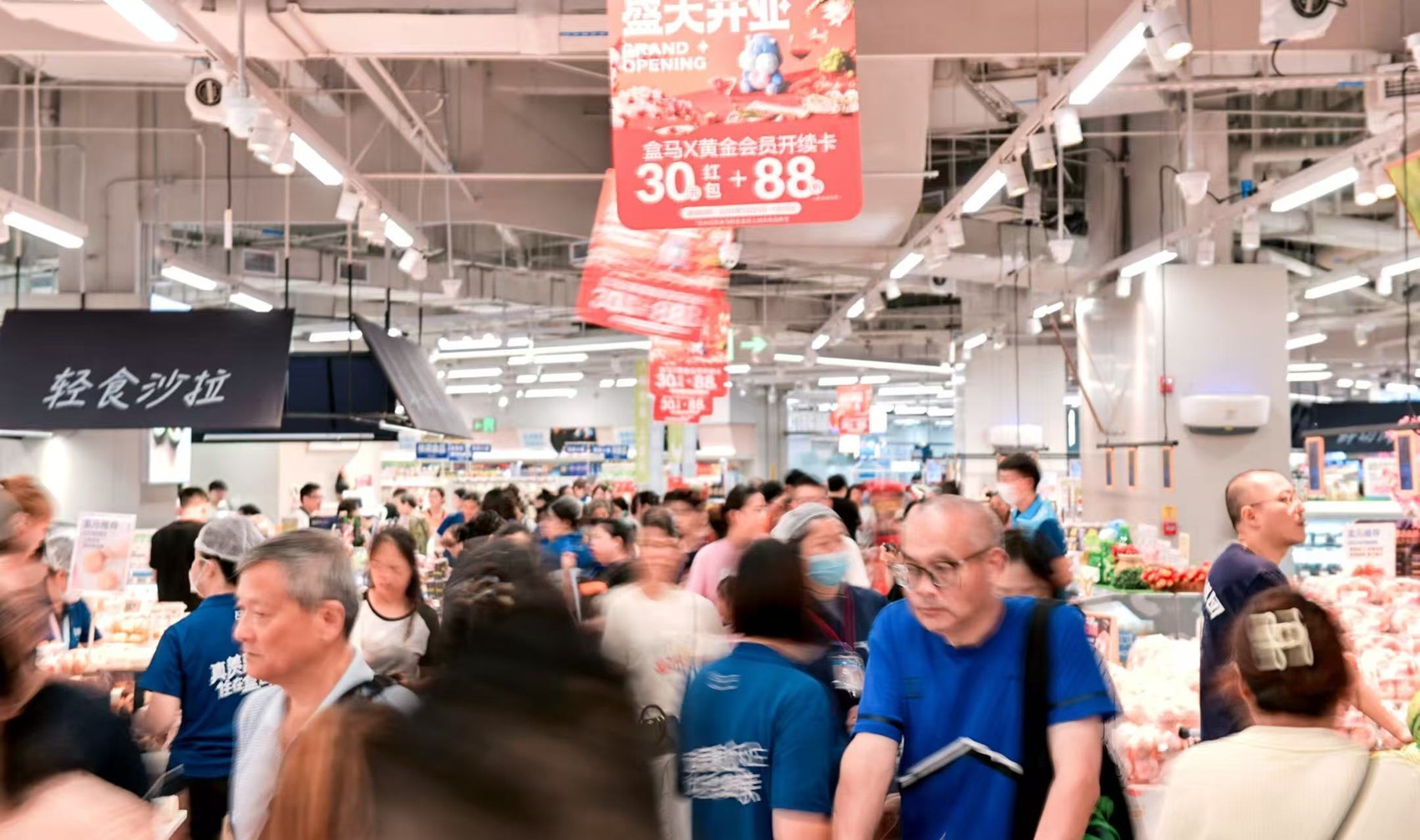 2025年,成都龙湖上城天街陆续启动“空间焕新+业态迭代+IP赋能”三重升级计划,成都龙湖上城天街负责人杨馨表示,当天“上新”的盒马鲜生是商场载体更新的重要一环。