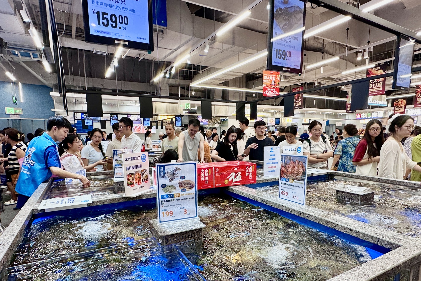 市民在盒马成都锦江大融城店水产区选购。程睦玲 摄