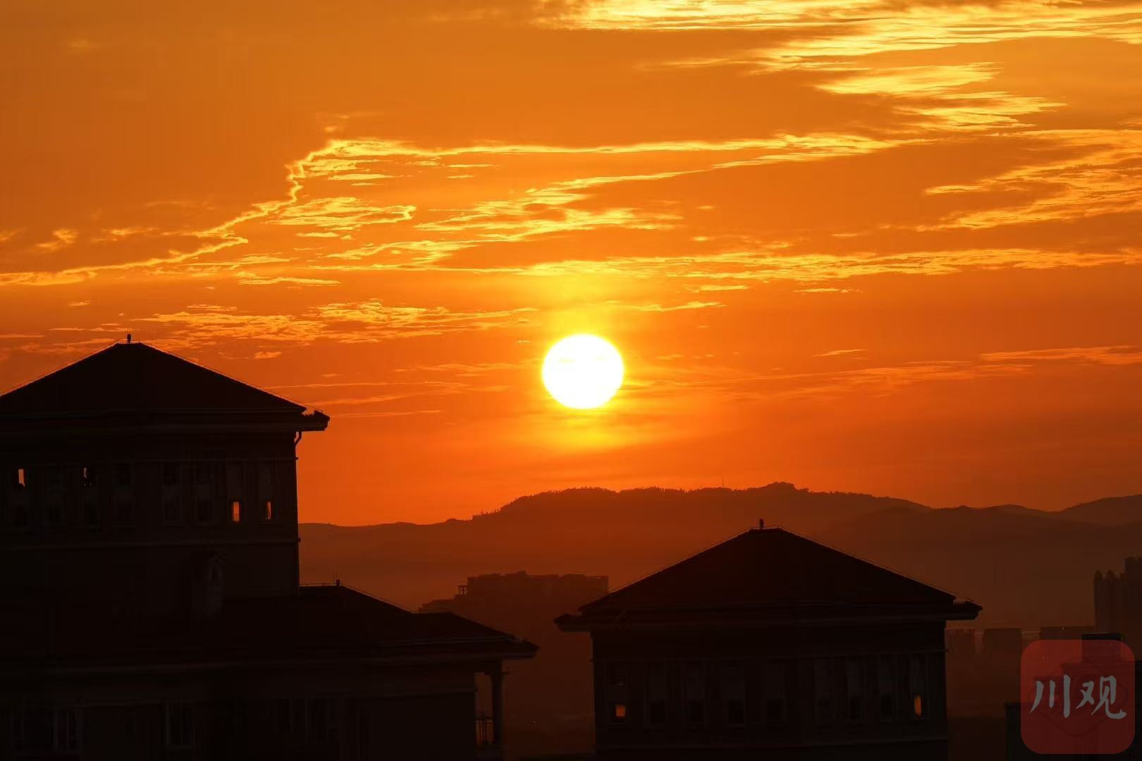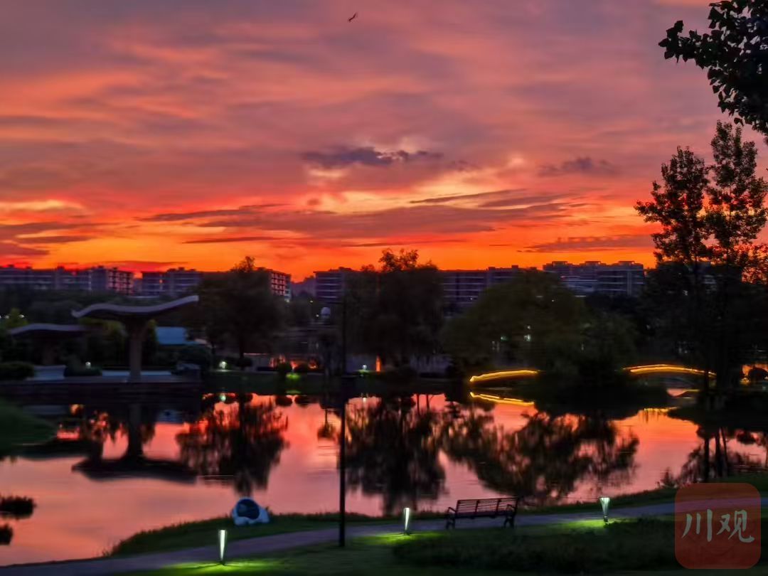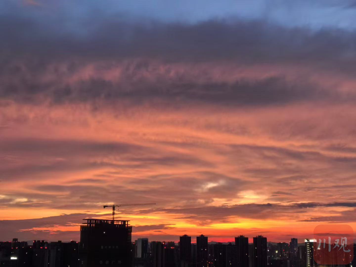7月26日清晨,成都又见朝霞漫天,金红色铺满天空!网友表示“早起的鸟儿有朝霞看”,你拍到了吗?