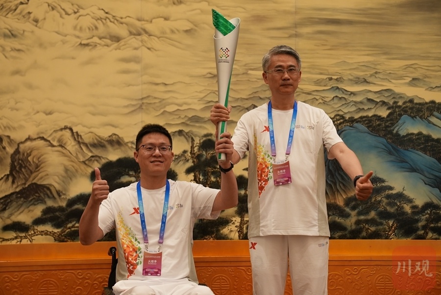 7月26日,成都世运会火炬经过成都武侯祠站武侯祠美术馆,程洪(电子科技大学自动化工程学院教授,主持研发我国首款完全自主知识产权的外骨骼机器人)、林寒(上述外骨骼机器人项目首批志愿者试验员)组成集体火炬手,接力第55棒火炬传递。当林寒借力外骨骼挺直身躯接过火炬,这一场景恰是程洪所言——这是科技与体育精神结合的展现。