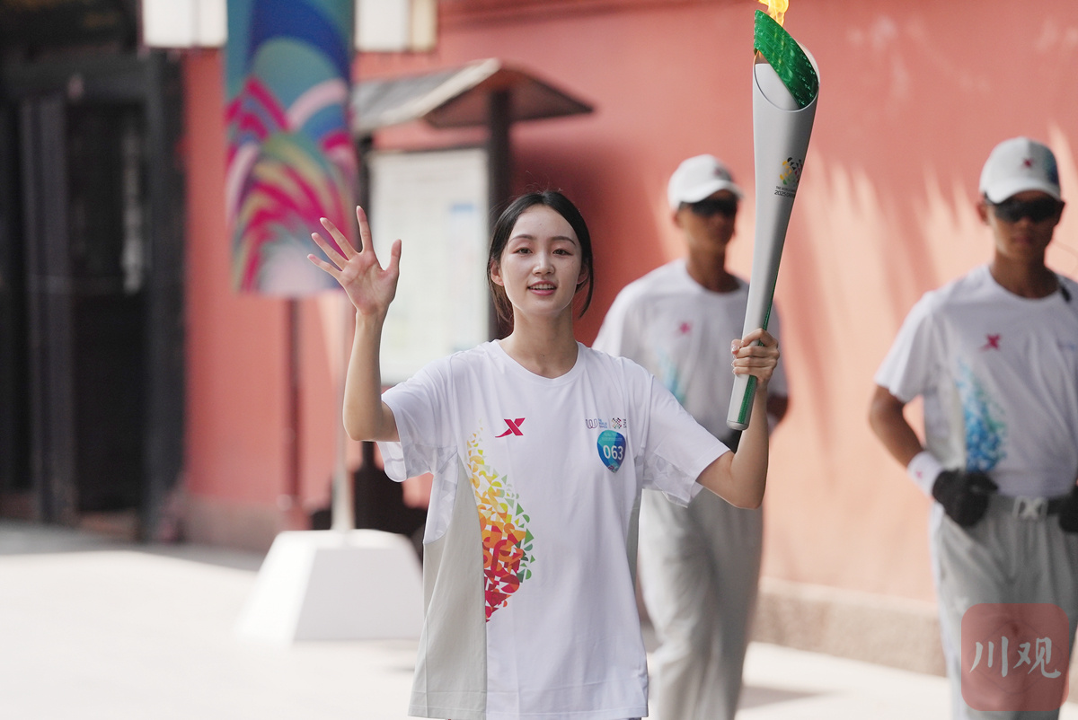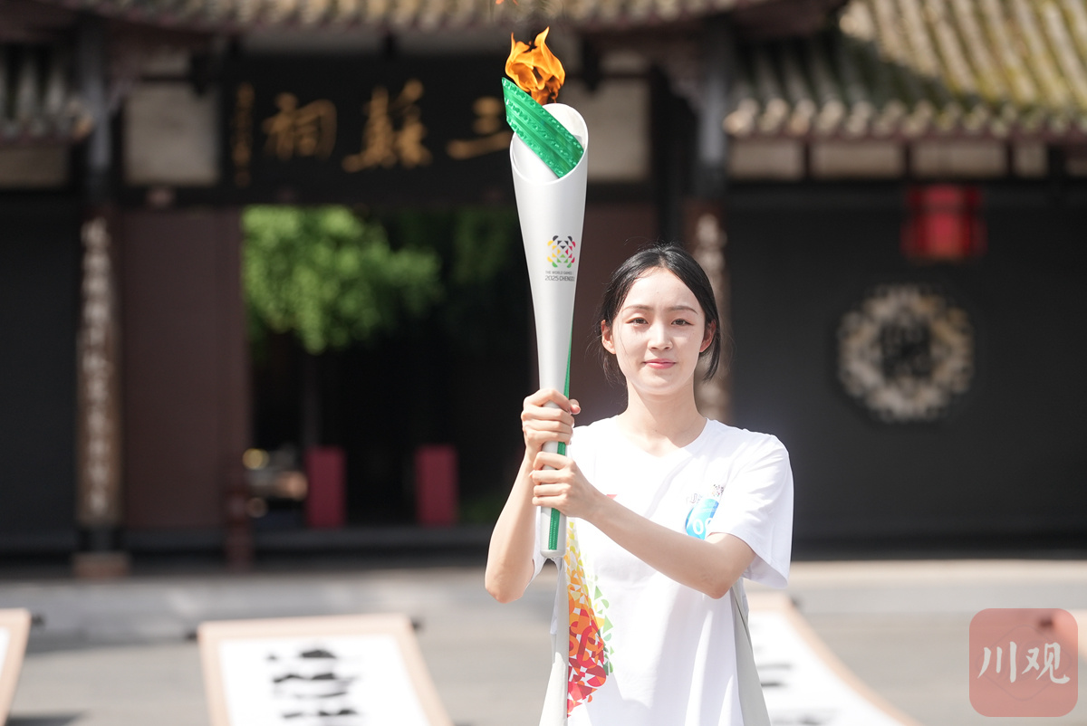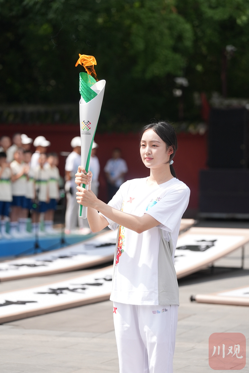 7月26日下午,在2025年第12届世界运动会火炬传递眉山三苏祠站现场,肖雁宁作为第63棒、眉山站首棒火炬手,高擎火炬跑出会场,开启了火炬传递眉山站的旅程。