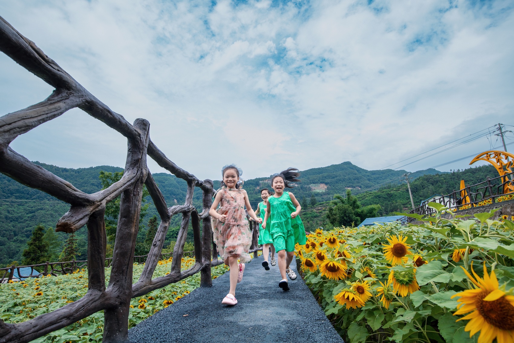 孩子们在乡间奔跑。