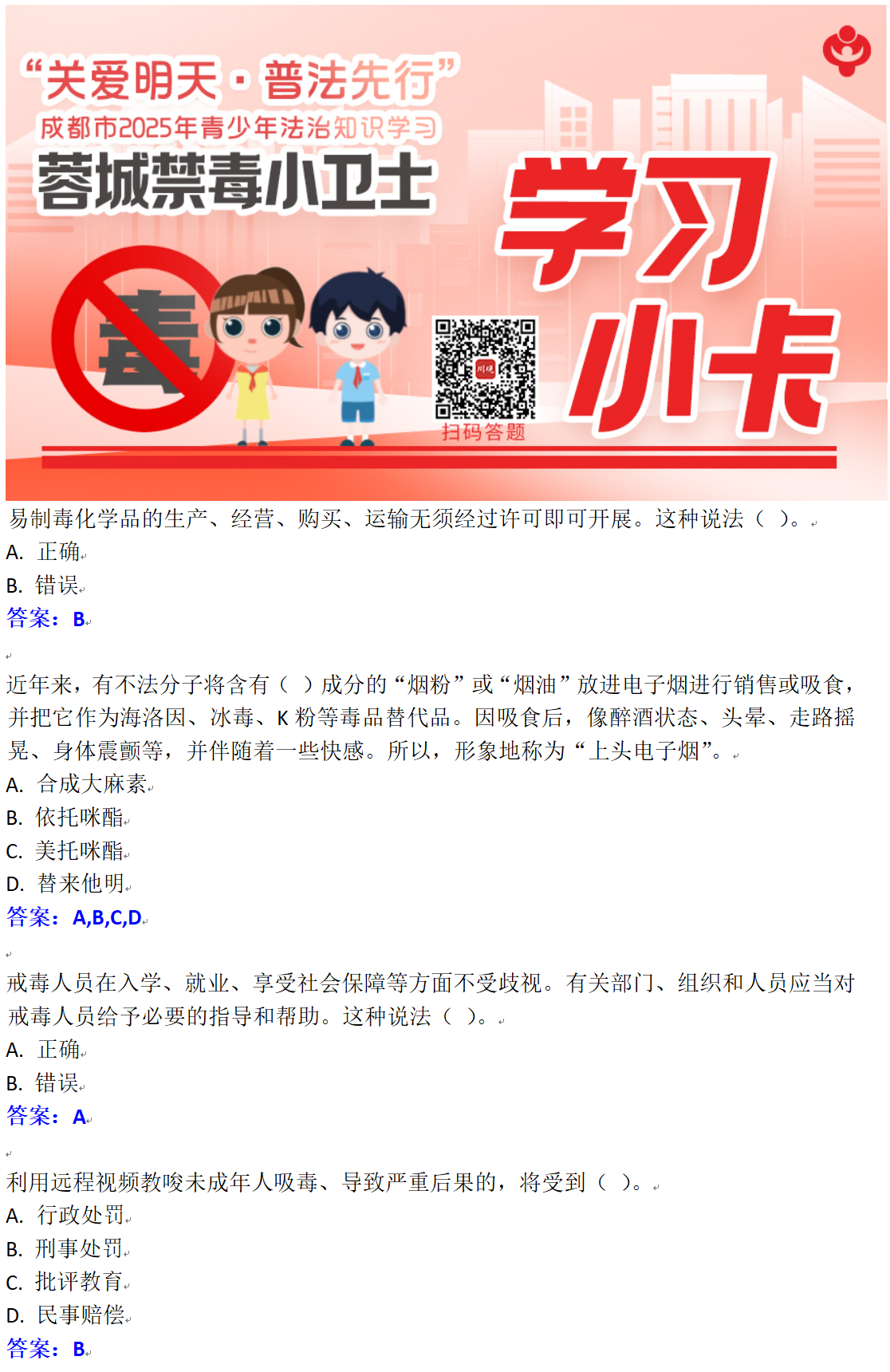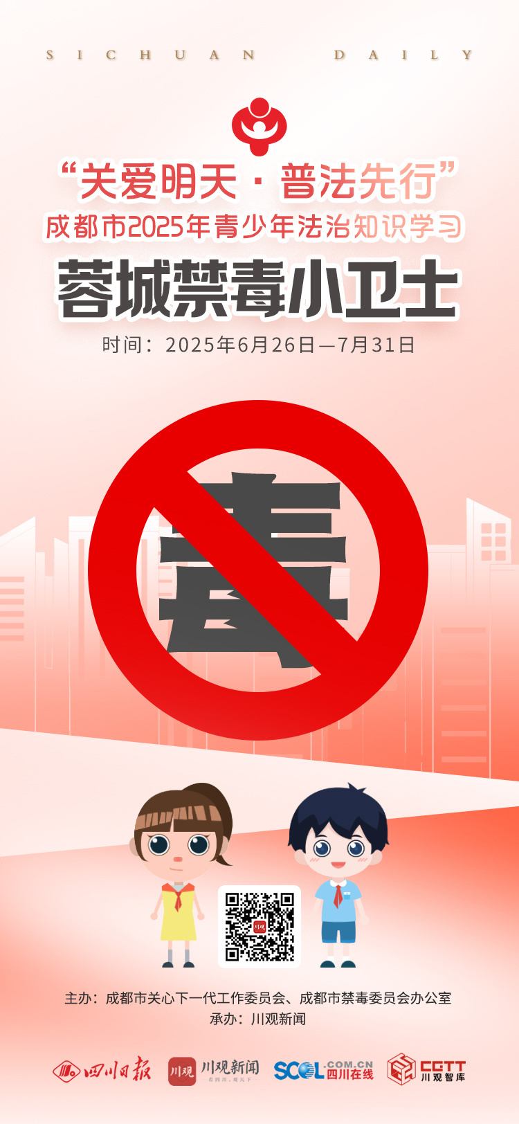 方式一:在川观新闻首页,点击右下方悬浮球,找到《蓉城禁毒小卫士——“关爱明天·普法先行”成都市2025年青少年法治知识学习》活动图片,点击参与活动即可参与;