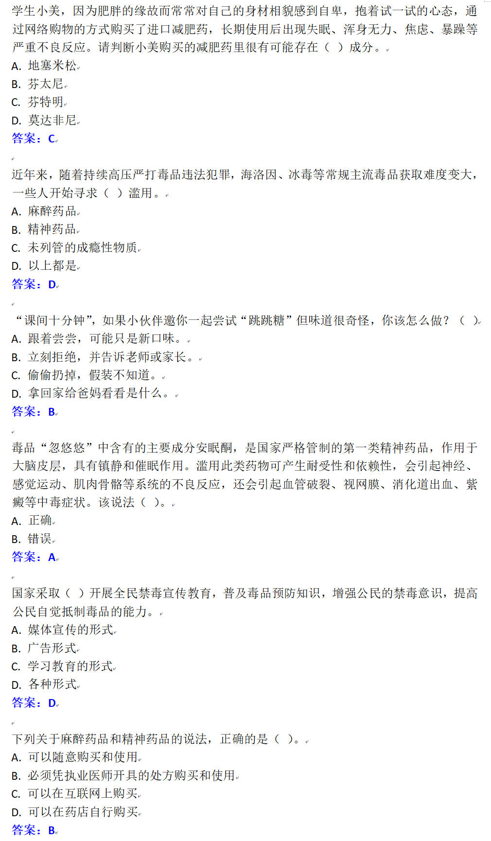 你随手分享的禁毒知识卡,
