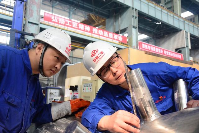 11月10日,天气微凉,中国二重集团公司核电石化事业部(德阳)核电容器厂内,铆焊工段依旧热气腾腾。