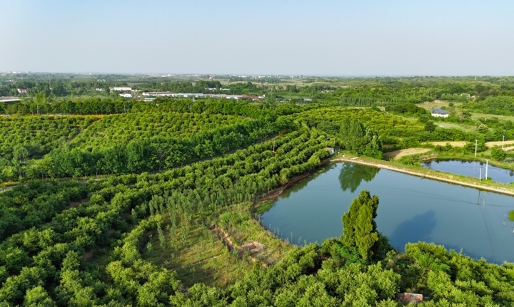 信阳市商城县观庙镇赵湾村村民赵师地,瞄准油茶树,念起致富经。此前他就承包了屋子后山的1000亩荒山,种上油茶树,一年四季绿意盎然。如今,他更是背靠油茶林,在自家院子里发展农家乐,将门前的池塘改造成垂钓场所,打造“油茶+”,吸引了不少游客。