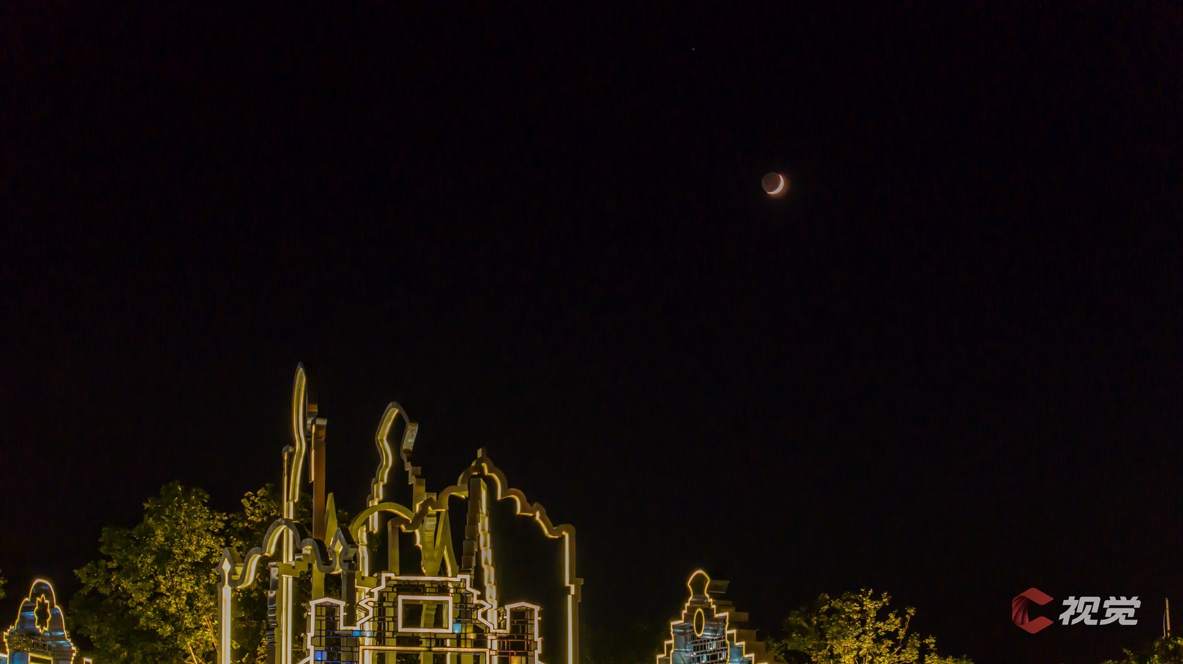用镜头捕捉这瞬间的美好。在城市、古镇、工地,星月与人间烟火同框,天文奇景照进现实,太治愈了!
