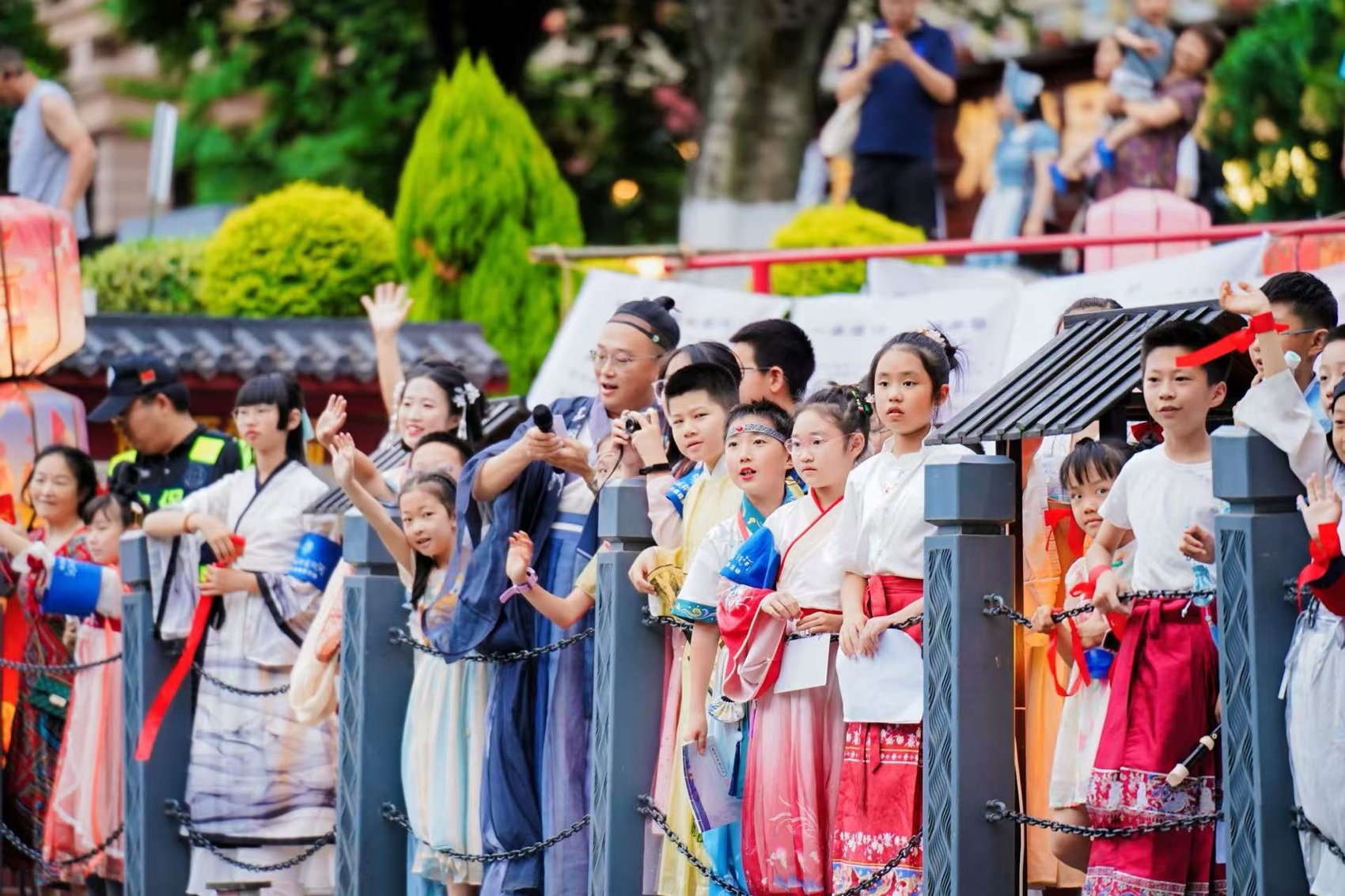 东门码头上身着汉服的小朋友们(“夜游锦江”供图)