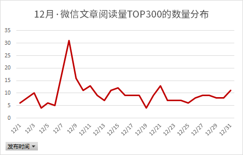 指数统计了12月微信公号平台阅读量前300名的微信文章,从时间分布上,12月8日达到峰值,所对应的时间点是成都防疫关键期。