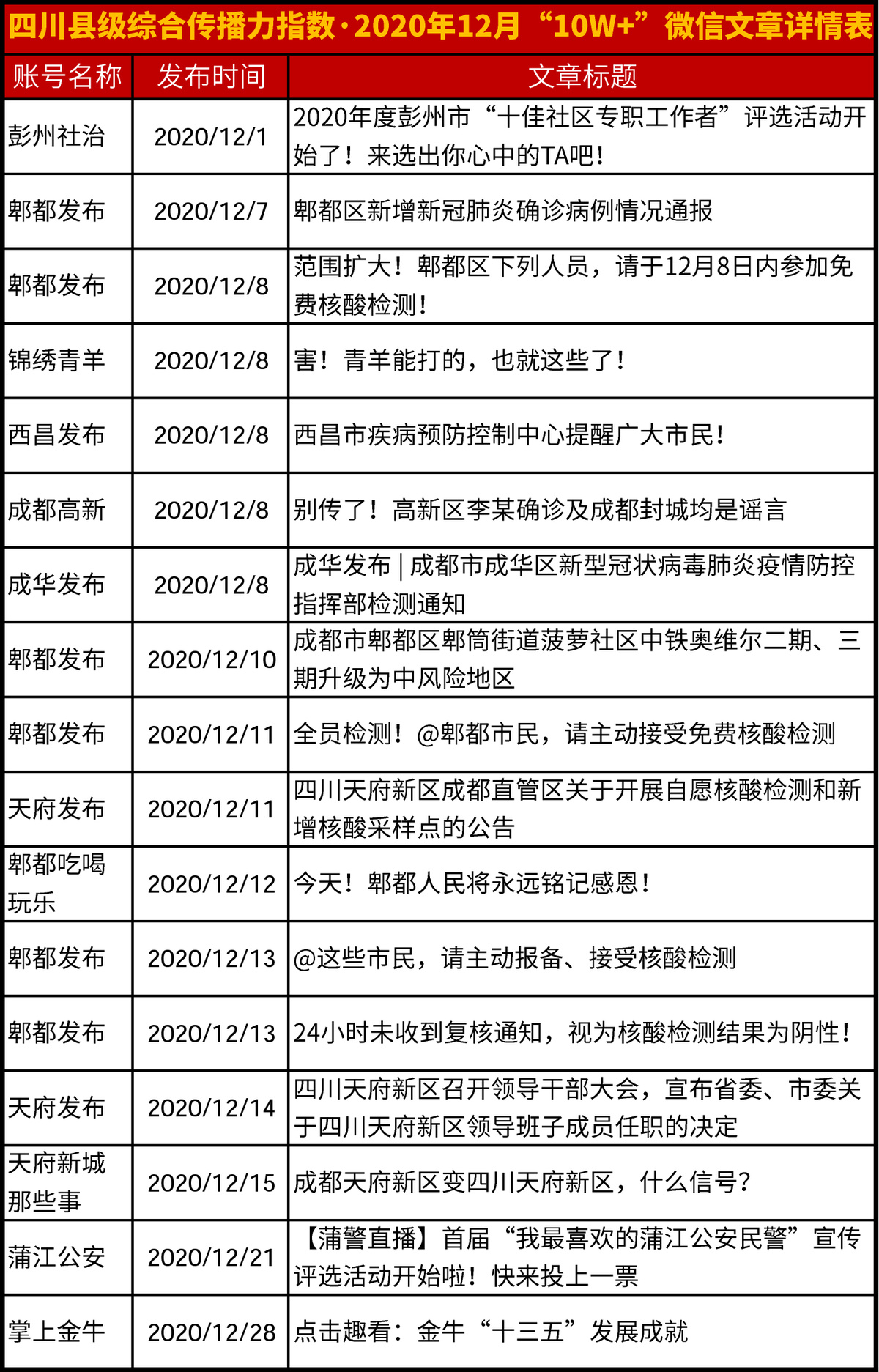 此外,指数还统计了12月四川县级单位发布的微信和微博最热文章,详情如下: