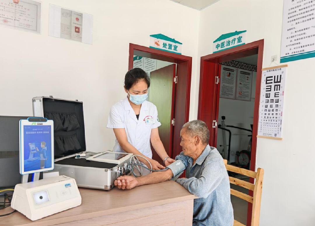 在新塘村卫生室,村医通过远程体检系统,实时将检测数据上传至区健康管理数据库。