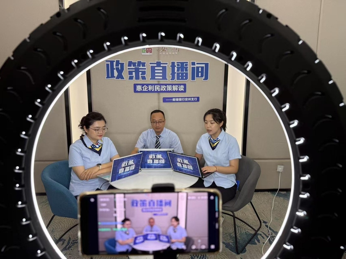 邮储银行安州区支行开展普惠金融服务政策解读直播。(邮储银行四川省分行供图)