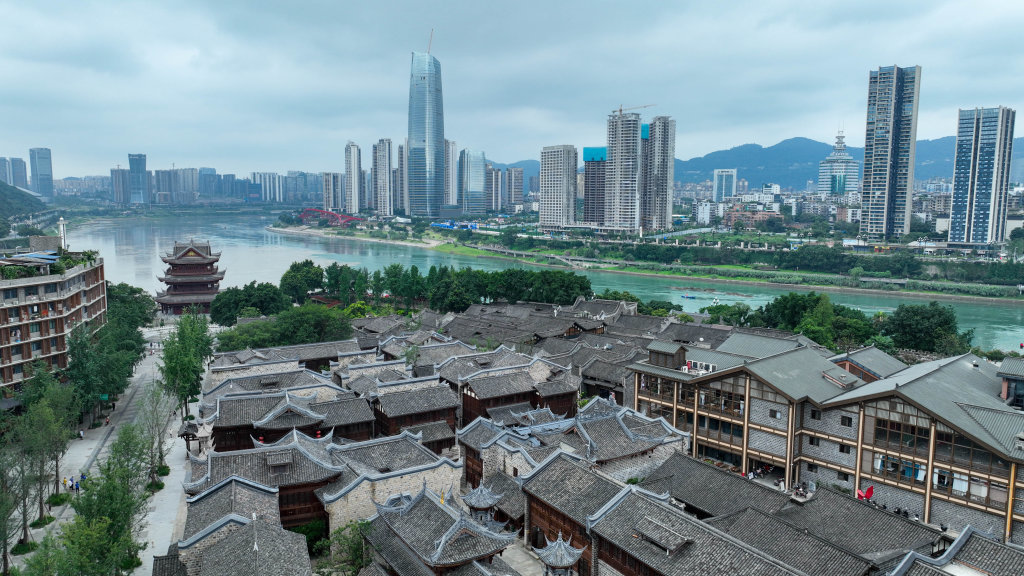 俯瞰宜宾市翠屏区冠英古街片区。它是老城区城市更新的代表性项目。 罗顺 摄