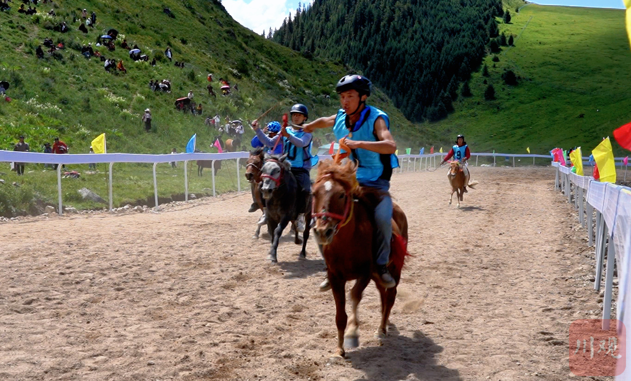 来自甲旭村的泽仁刘麦采取后发制人的策略,连续超越,最终夺冠。