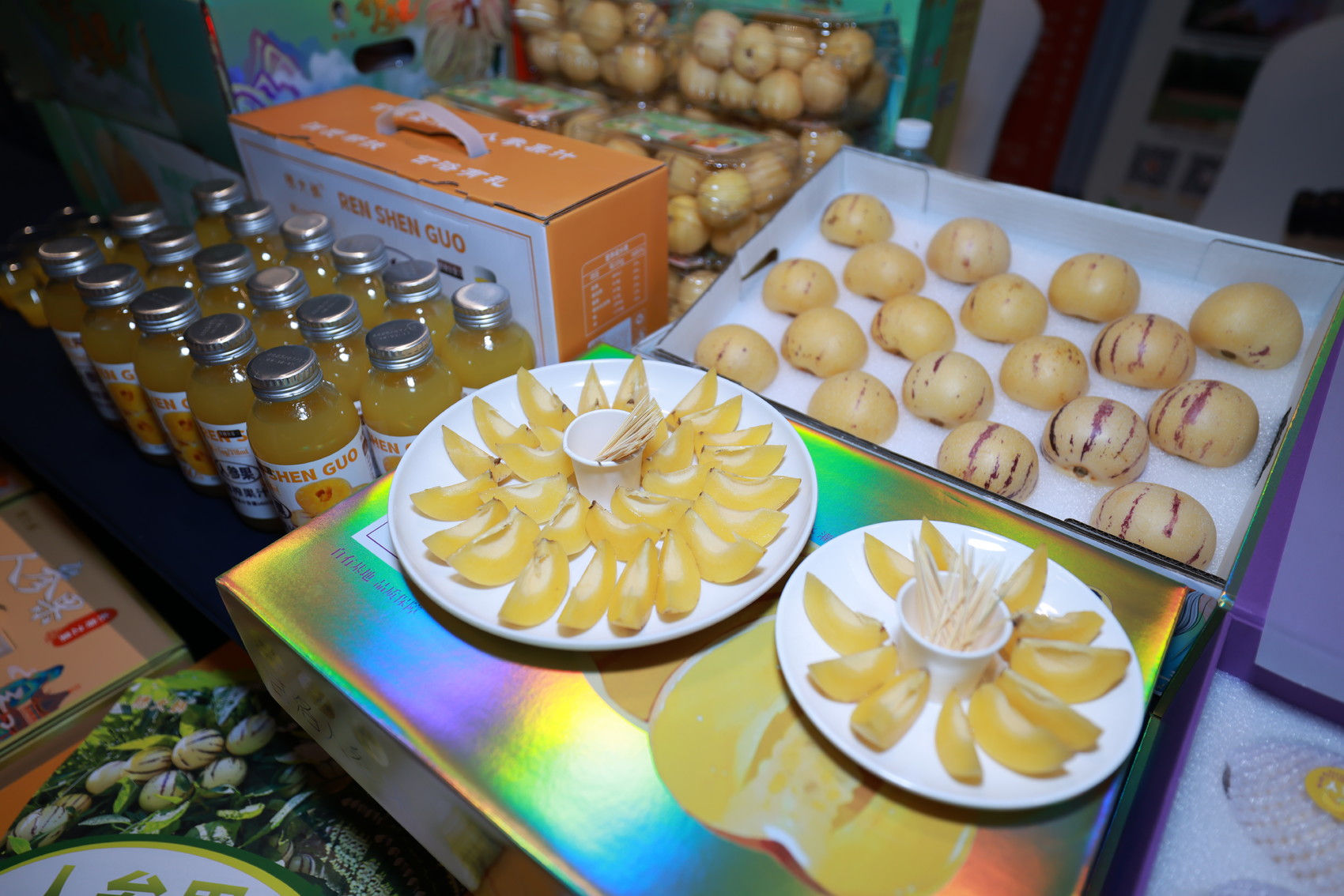 会场展区,摆放着托底性帮扶合作项目各式产品 省工商联供图