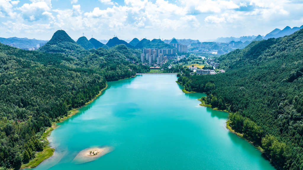 这是7月30日拍摄的六盘水市钟山区瑶池公园风光(无人机照片)。