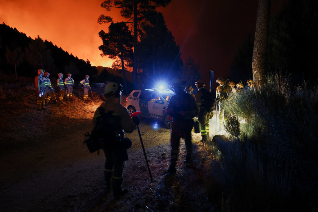 7月29日,在西班牙埃尔阿雷纳尔郊区,消防员准备扑救野火。