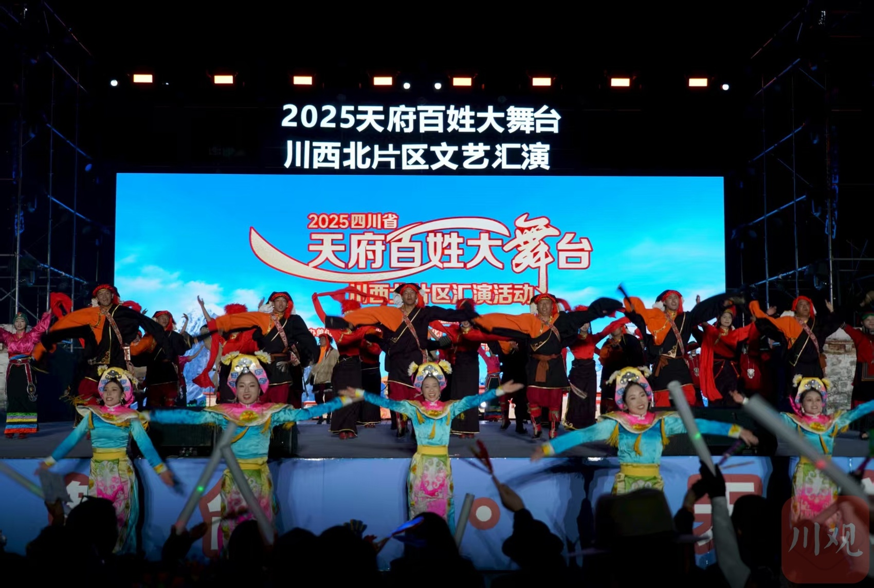 7月30日晚,2025四川省“天府百姓大舞台”川西北片区汇演活动在理塘县格萨尔广场举行。来自阿坝州、炉霍县、九龙县、理塘县的民间文艺爱好者们齐聚“天空之城”,用歌声、舞蹈与热情,为现场观众献上了一场充满民族特色与乡土气息的文化盛宴。