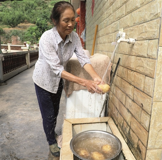 雷树全满心欢喜,心心念念的自来水终于通到了家里,从此他再也不用喝那“纯天然”的山坪塘水。雷树全盼了一辈子的自来水,是经历六级加压,从洪雅县青衣江翻山越岭而来。他支付的1600元安装费用,仅占安装成本的四分之一,其余部分均由丹棱县财政兜底。