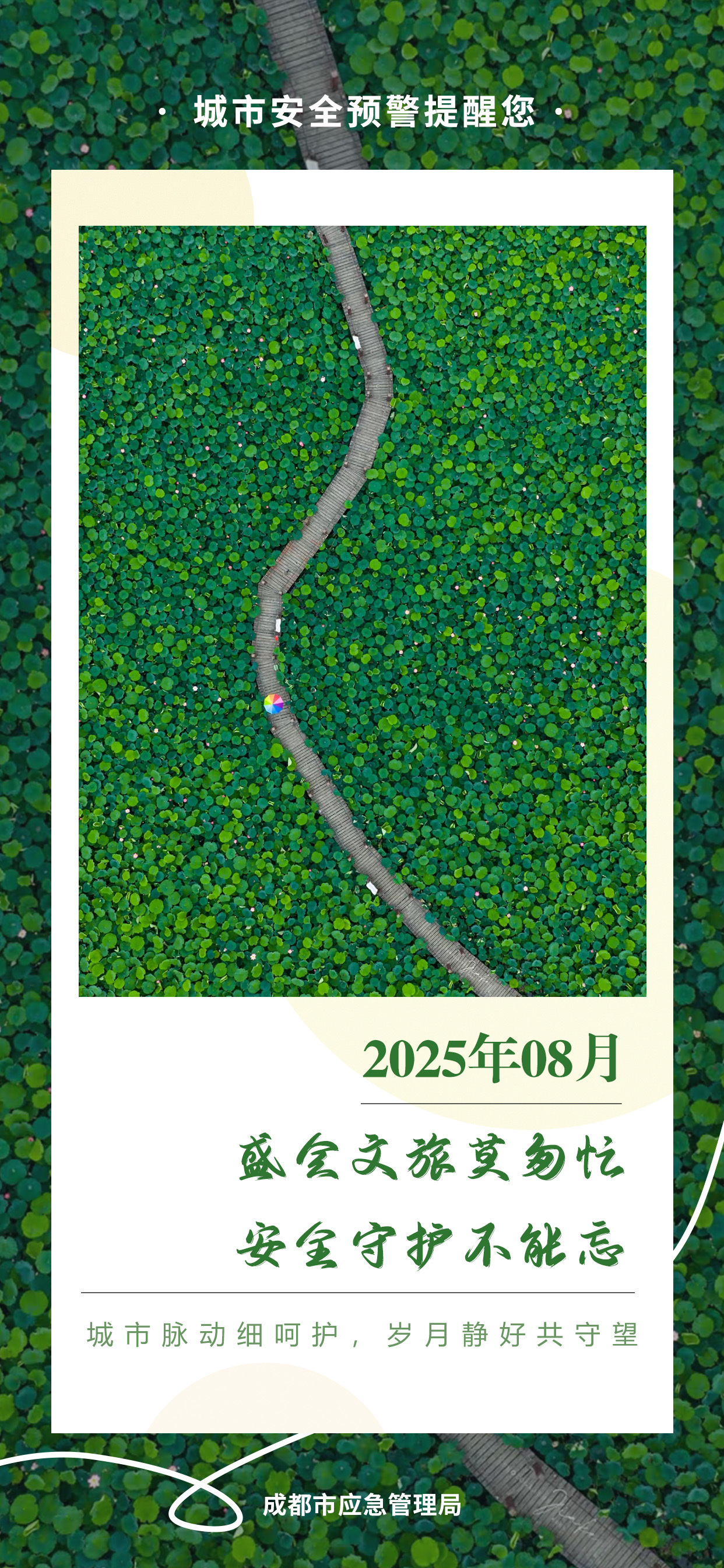 进入8月,防汛关键期、暑期、旅游季叠加,相关领域安全风险增大。8月1日,成都市安办(市防减救灾办)发布8月城市安全风险防范提示,提醒生产经营单位和市民重点防范以下安全风险。