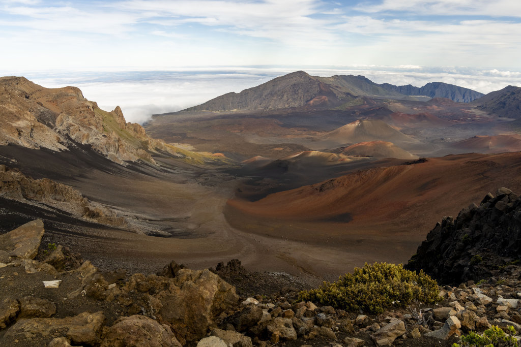 2024年11月23日在美国夏威夷州库拉附近的哈莱阿卡拉国家公园拍摄的哈莱阿卡拉火山。图据新华社/美联