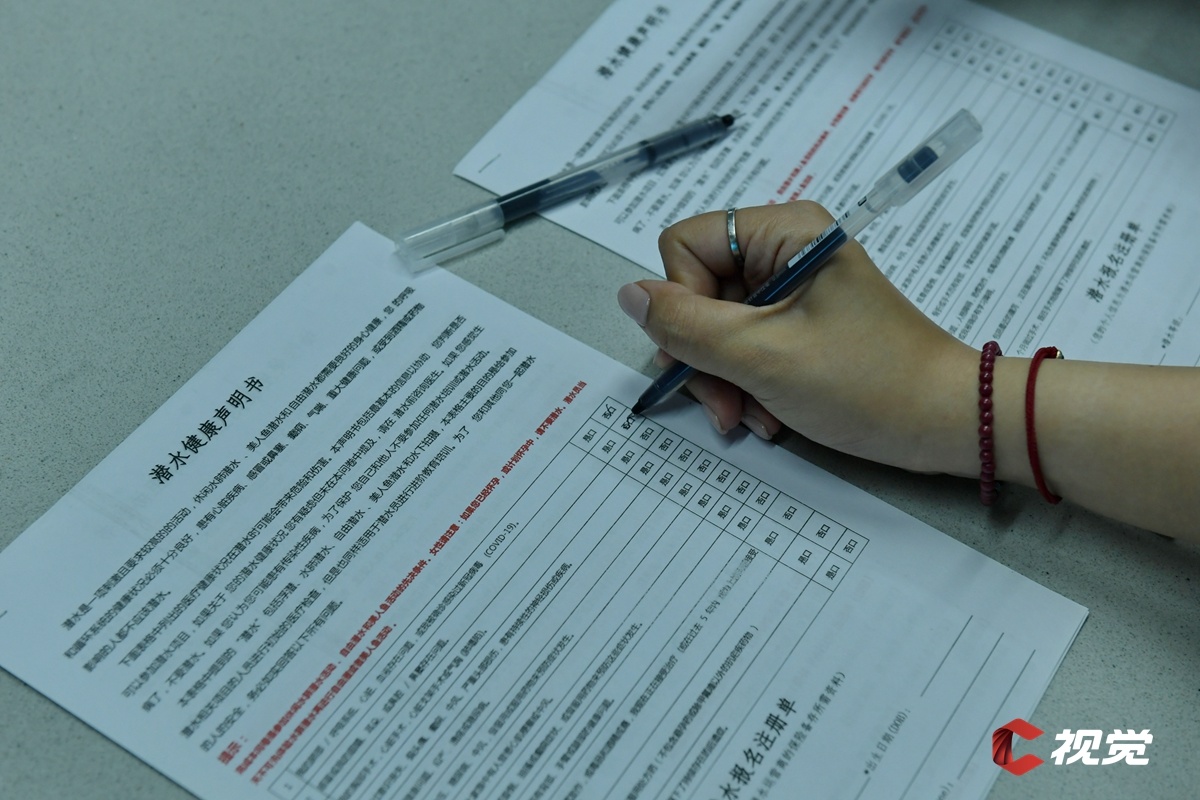 每一位潜水爱好者在下水前都要签下“潜水健康声明书”。