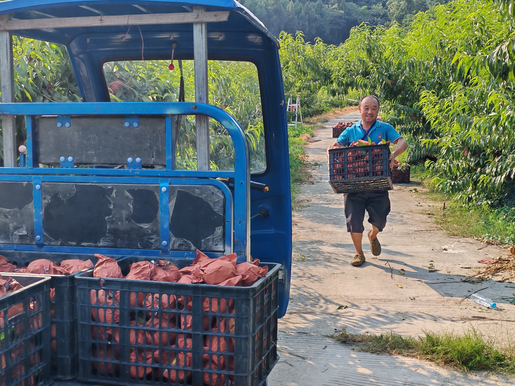 8月3日清晨,当第一缕阳光洒在乐至县龙门镇茜麒家庭农场的果园,一辆满载着金黄色黄桃的小货车从农场缓缓驶出。果农刘用素站在田埂上,目送着小货车渐行渐远,眼角的皱纹里盛满了笑意。这已经是她多次为在广州、深圳打拼的儿女寄去家乡的甜蜜了。