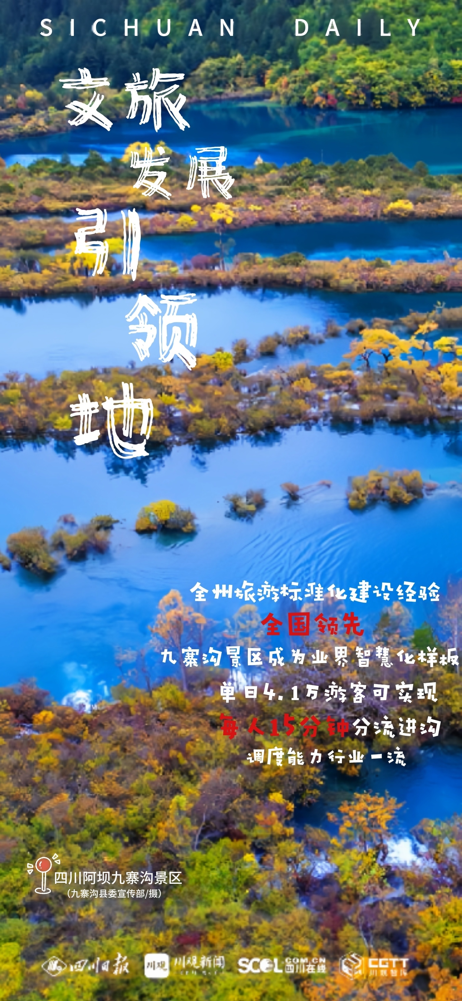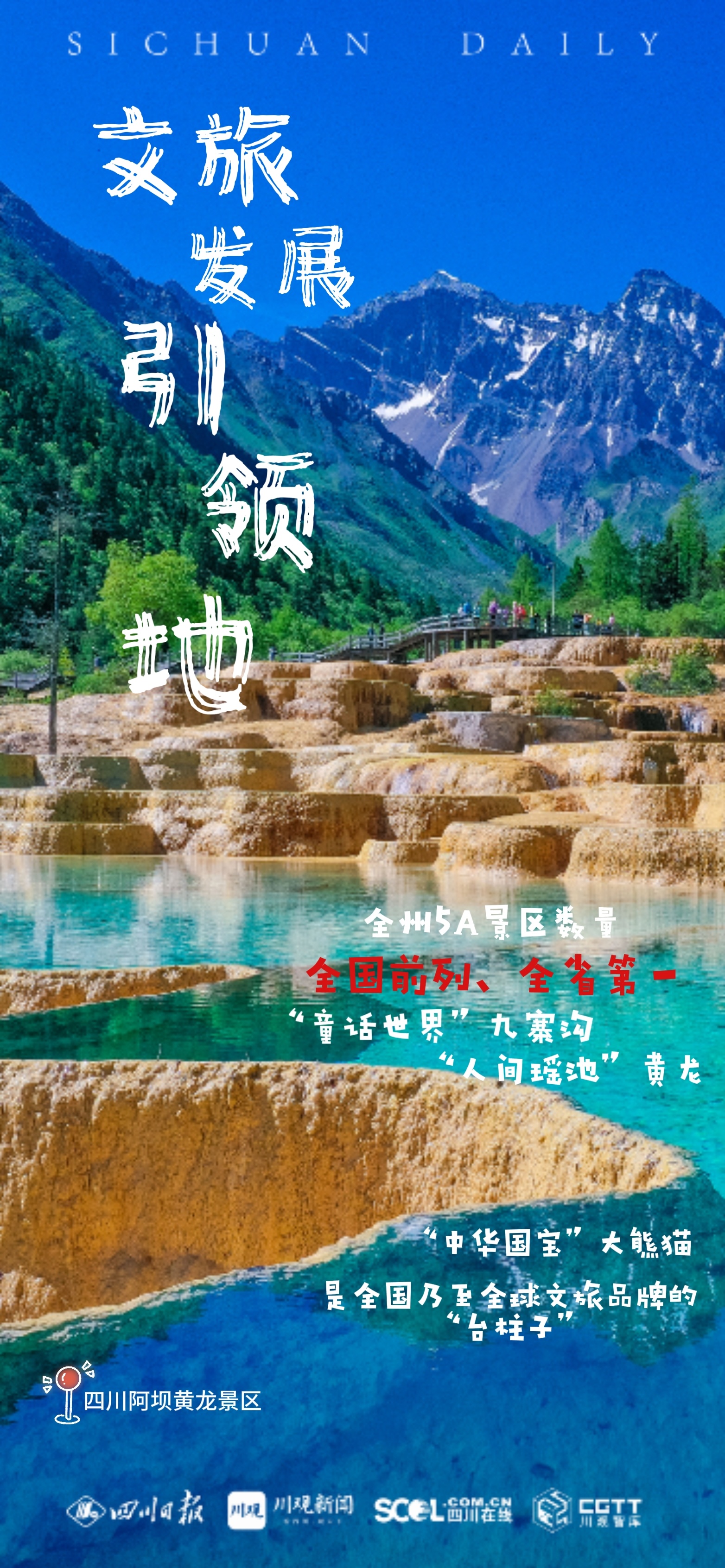 阿坝是文旅发展引领地。品牌美誉度越来越靓,市场占有度越来越大,行业专业度越来越高。“童话世界”九寨沟、“人间瑶池”黄龙、“中华国宝”大熊猫,是全国乃至全球文旅品牌的“台柱子”。