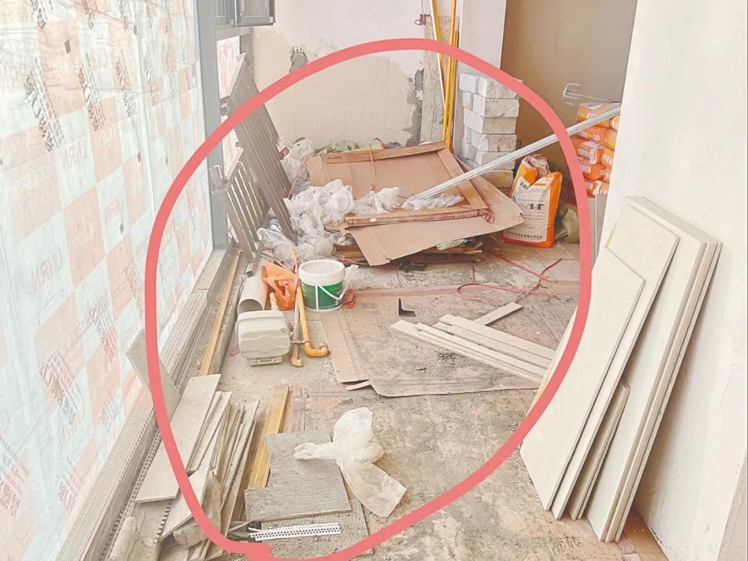 7月30日,记者来到侯先生装修到一半的新房实地探访,看到施工现场十分混乱,建材瓷砖随意摆放,墙地对缝处都还没有贴上瓷砖,在缝隙处甚至还有施工人员乱扔的空烟盒。