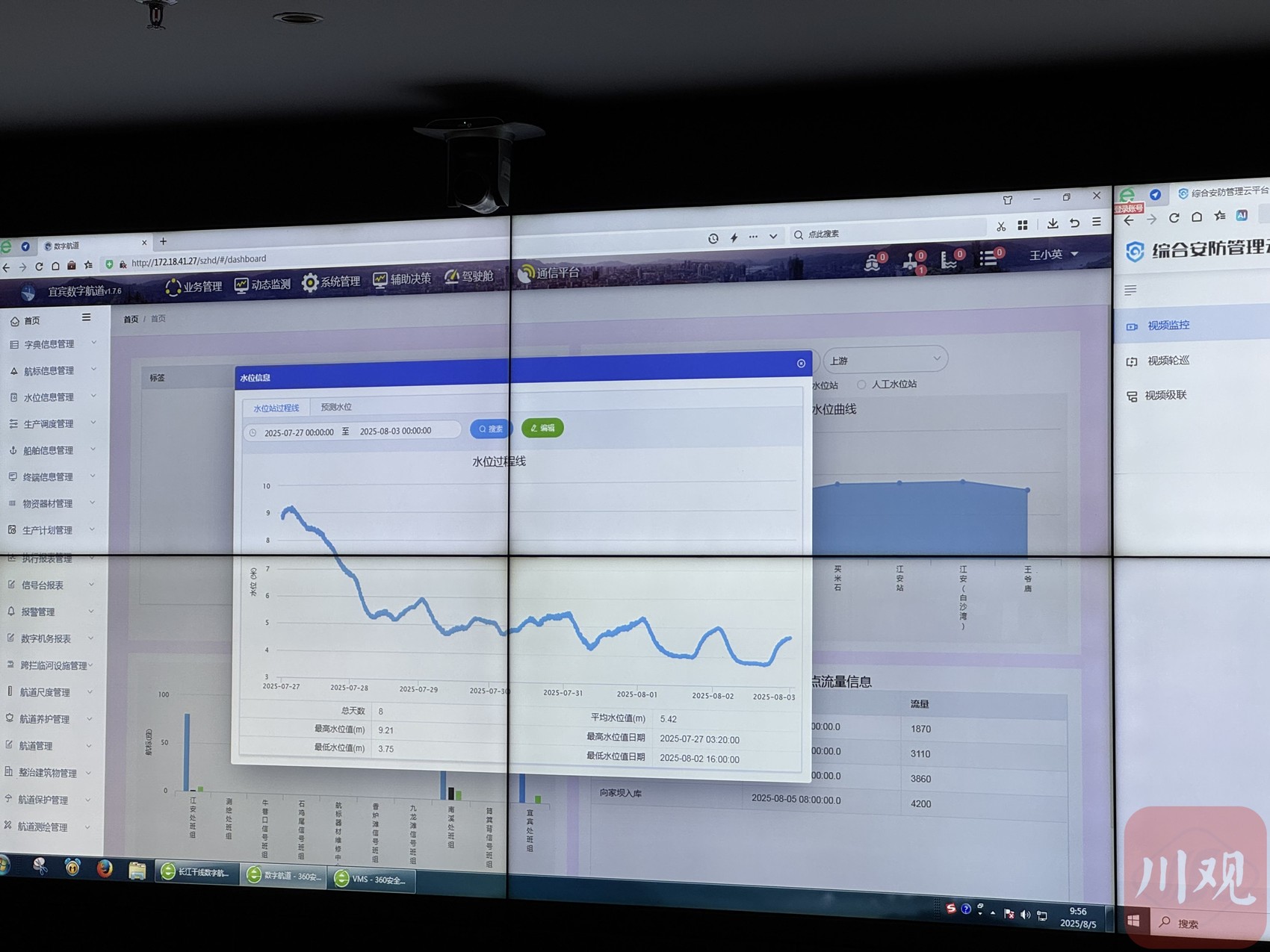 过去,在枯水期调整信号台的指示灯、确认航道信息需要在信号站内操作。如今,杨庆坐在宜宾航道运行指挥中心,就能“眼观六路”“耳听八方”。“岸边有实时监控,水位变化和船只通行情况一目了然,船只有通行需求可以与指挥中心直接通话。”他说。
