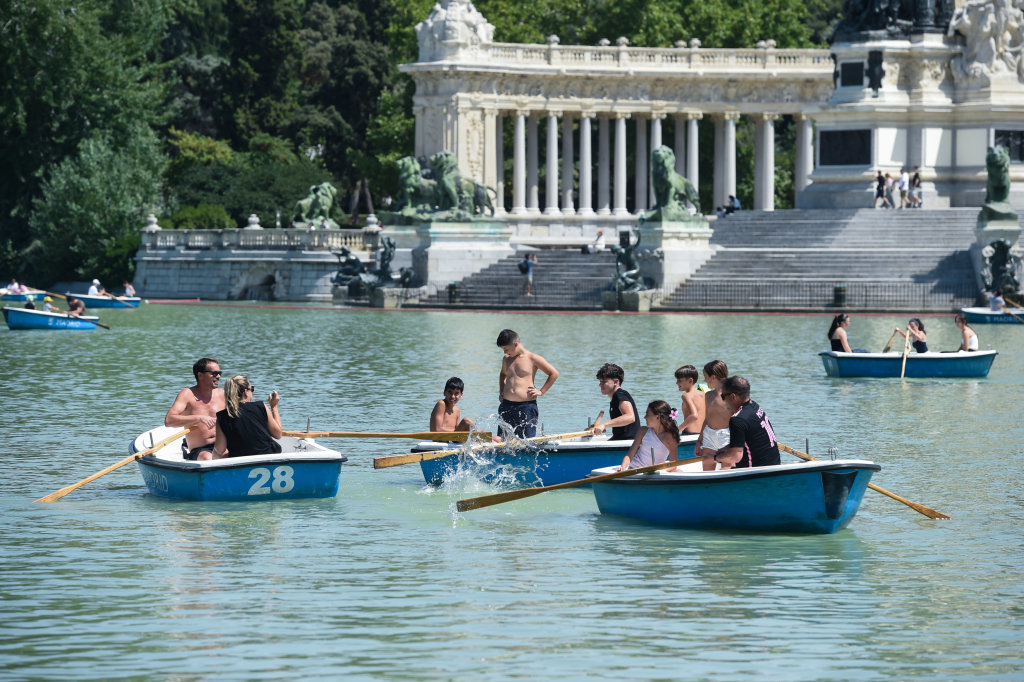 8月4日,人们在西班牙马德里的丽池公园划船。