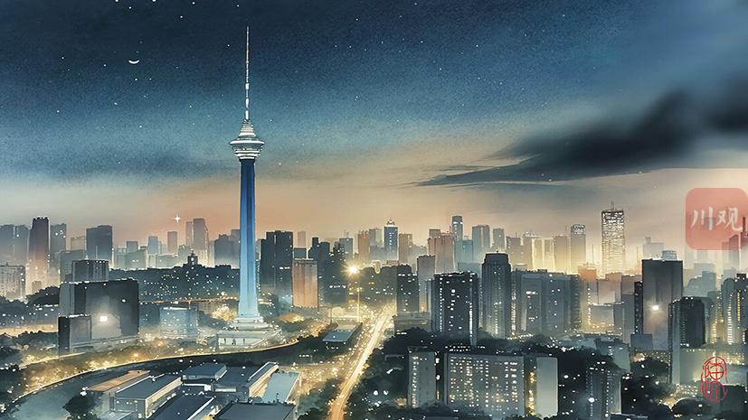 夜里,在 339 天府熊猫塔下伴锦江晚风。