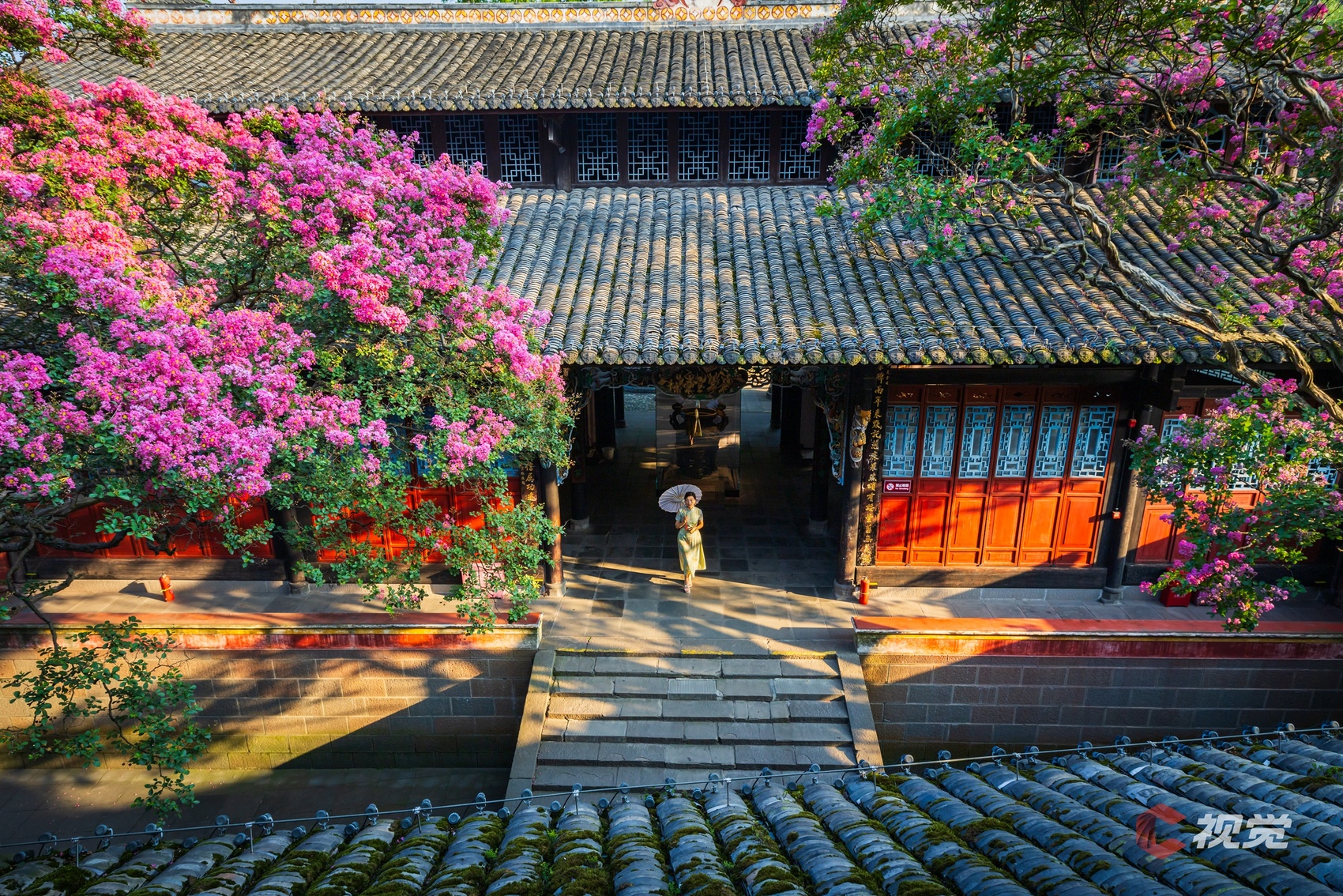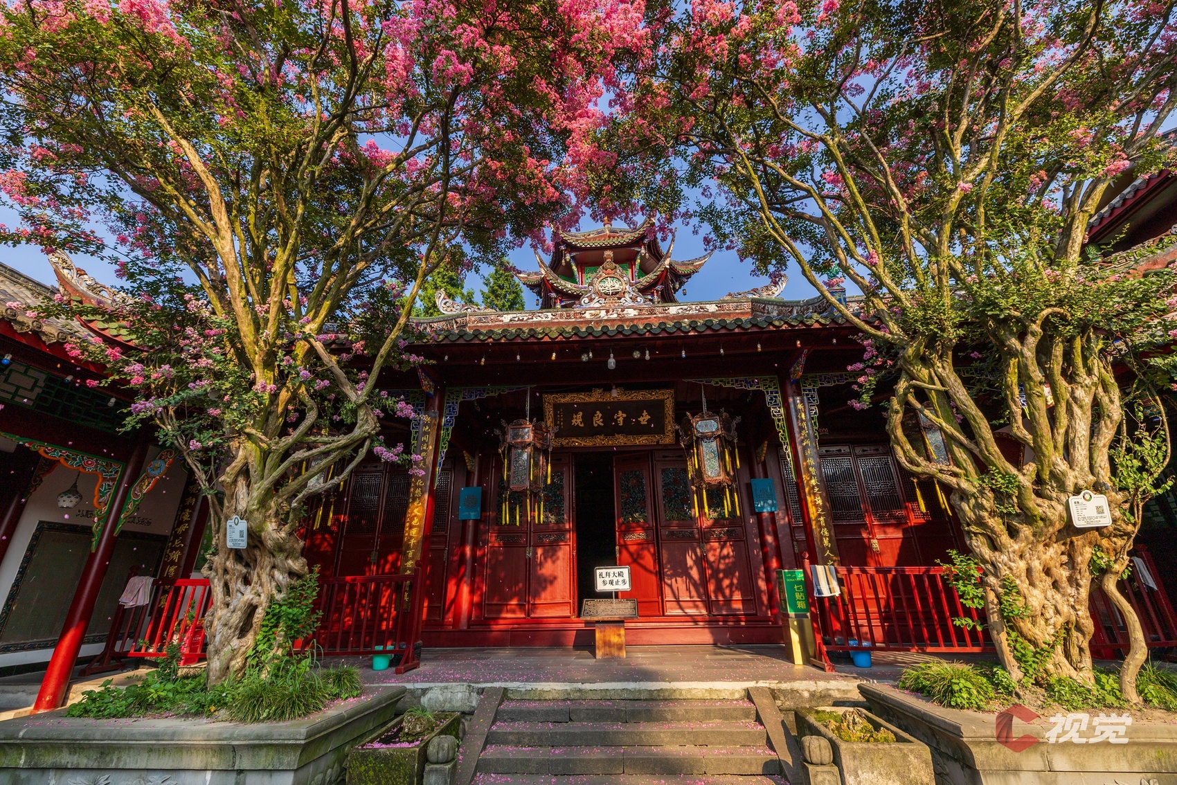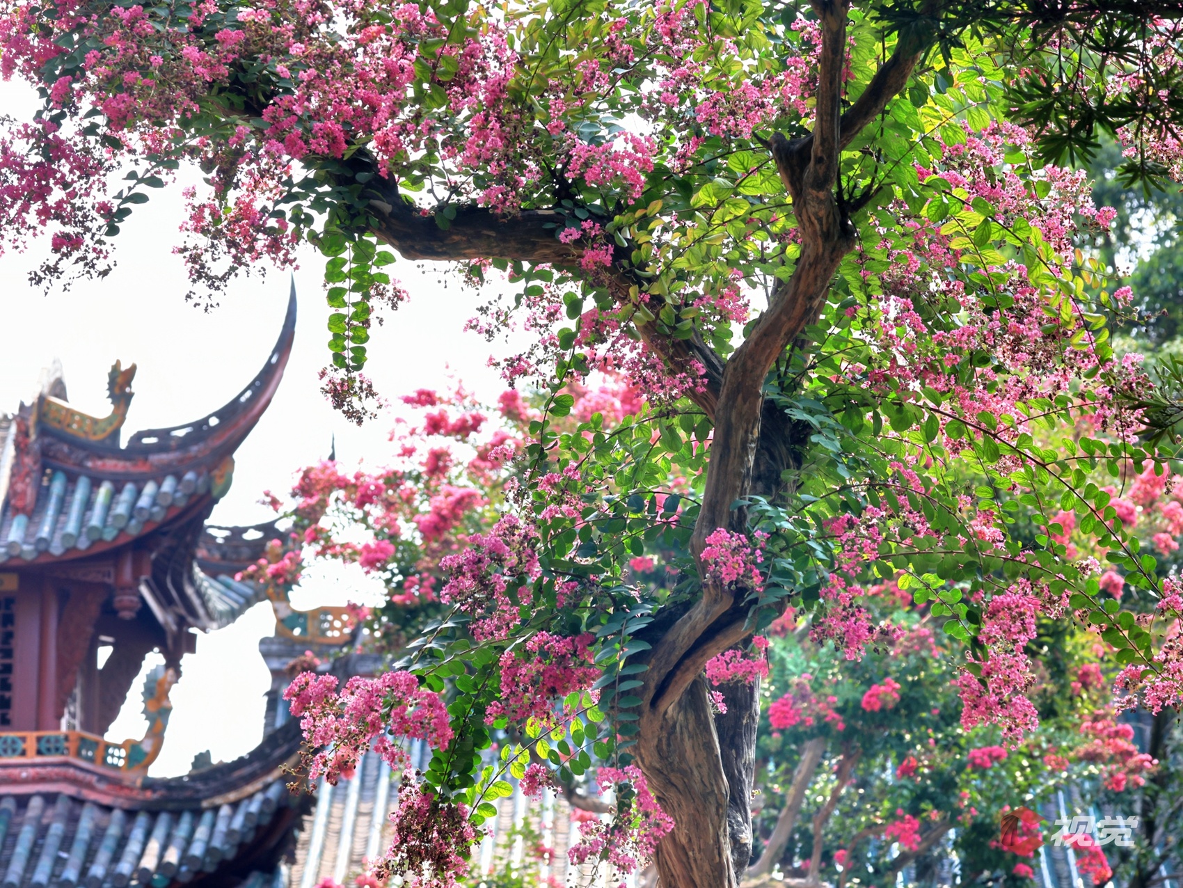都江堰伏龙观紫薇花盛开,为这千年古建增添了诗意与浪漫。C视觉签约摄影师 周新联
