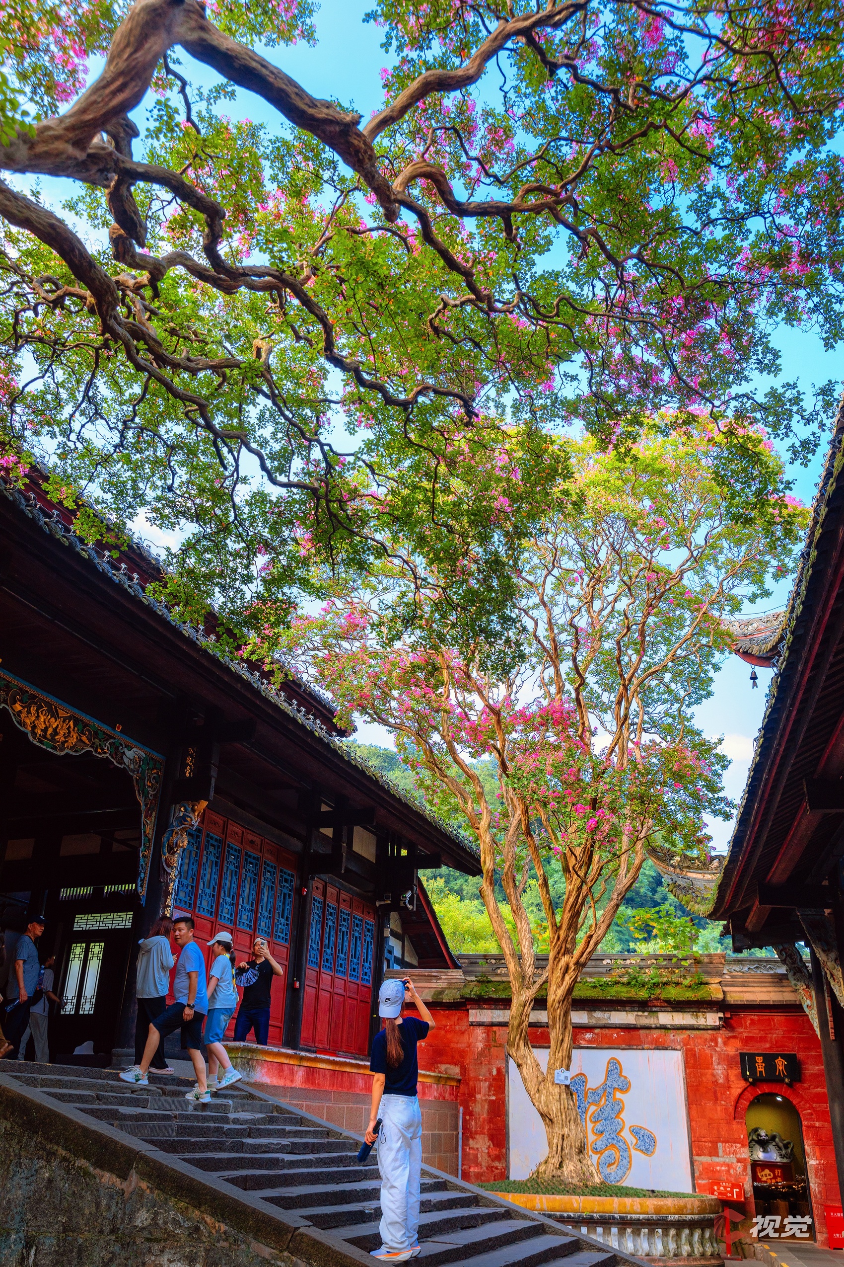 都江堰伏龙观紫薇花盛放,吸引了众多游客前来打卡。C视觉签约摄影师 周静