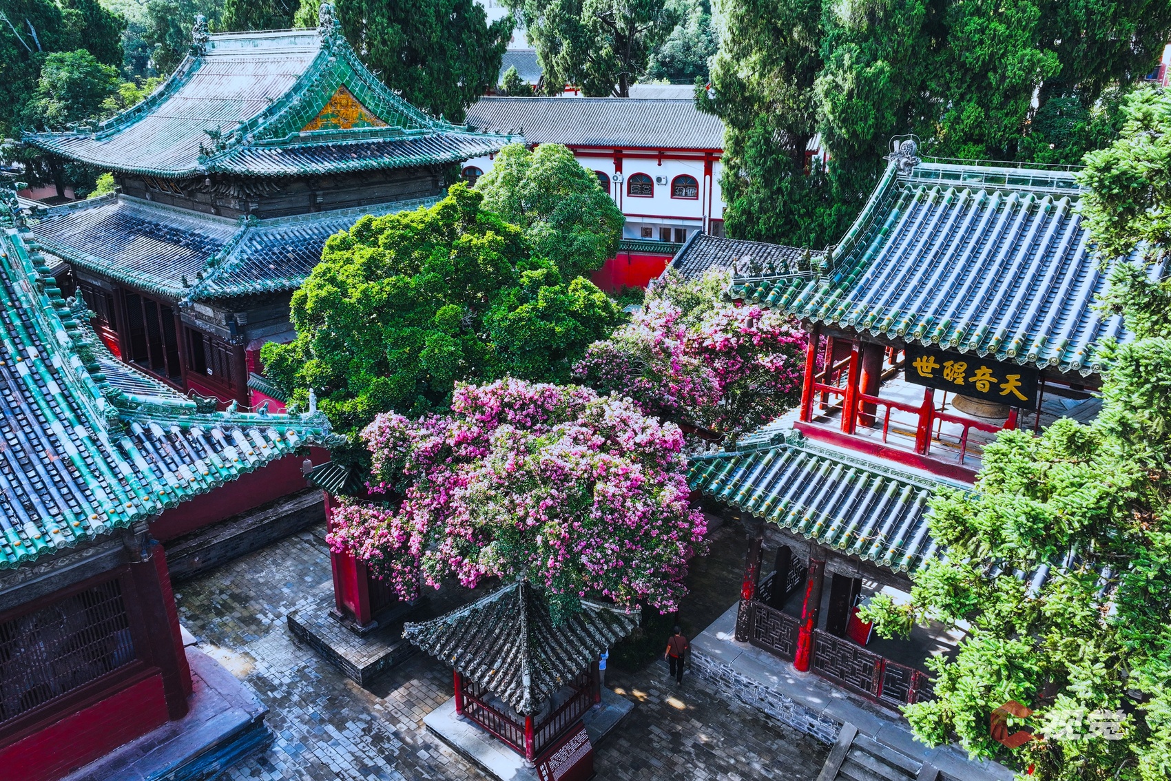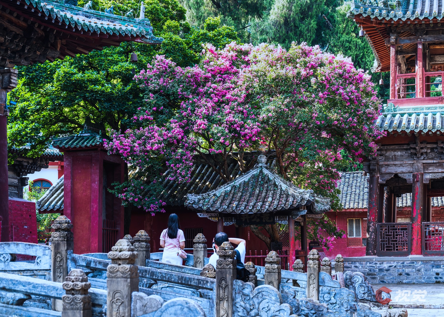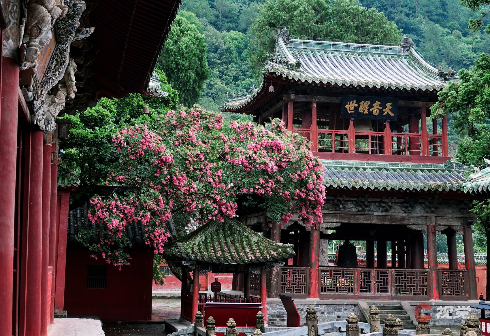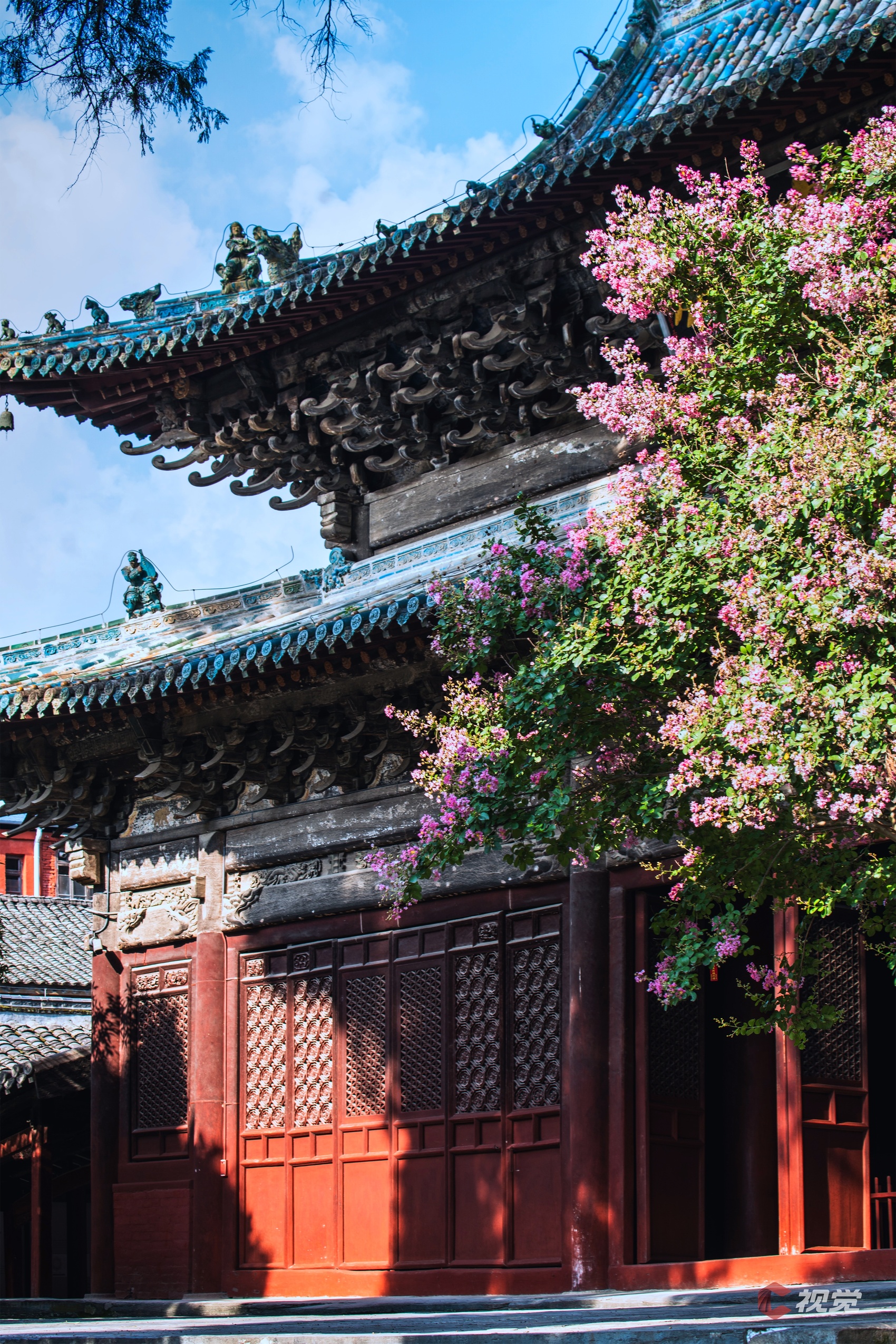 绵阳平武报恩寺紫薇花正值盛放期,红墙黛瓦,禅意盎然。C视觉签约摄影师 胡宇