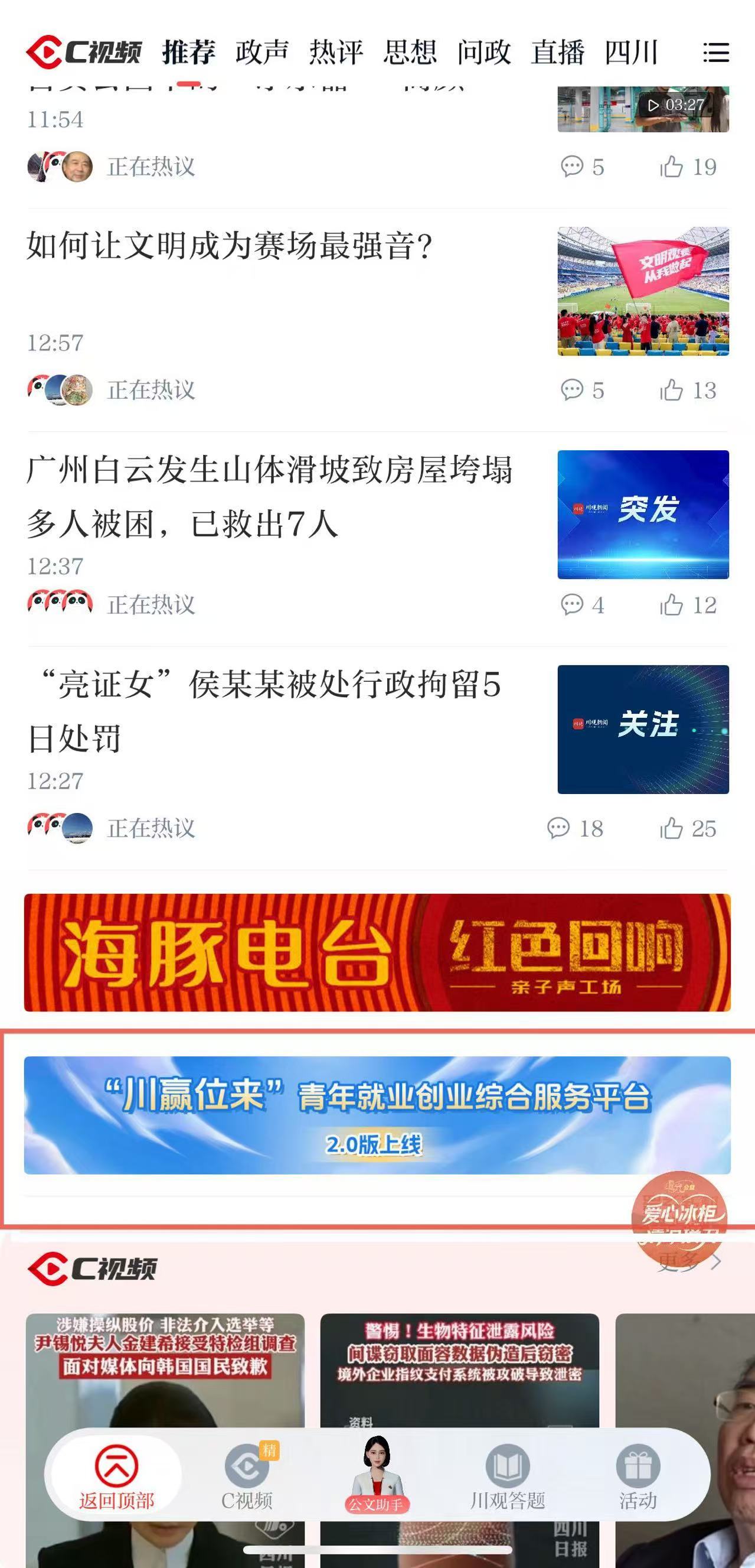 1、扫描下方二维码,下载最新版川观新闻客户端,在推荐页找到“川赢位来”青年就业创业综合服务平台