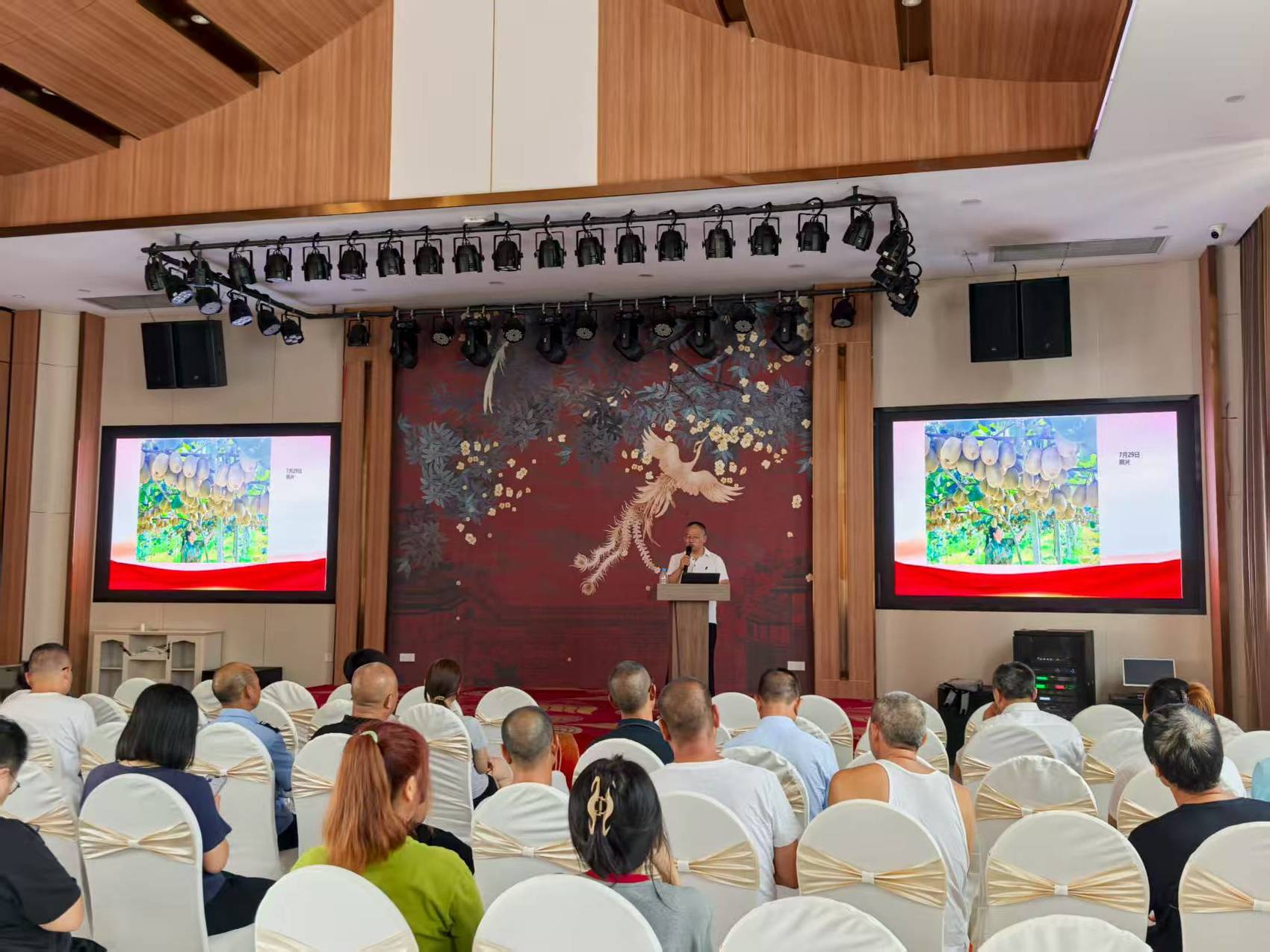 她口里的专家,便是为她免费提供三年技术服务的彭州市农业科技专家服务团团长杨斌。在随后的培训会上,杨斌围绕猕猴桃如何选择栽培模式、二次嫁接、应对极端天气等问题,通过理论知识和实操技术的现场分享,和参会人员互动交流,为处在盛果期的猕猴桃“保驾护航”。