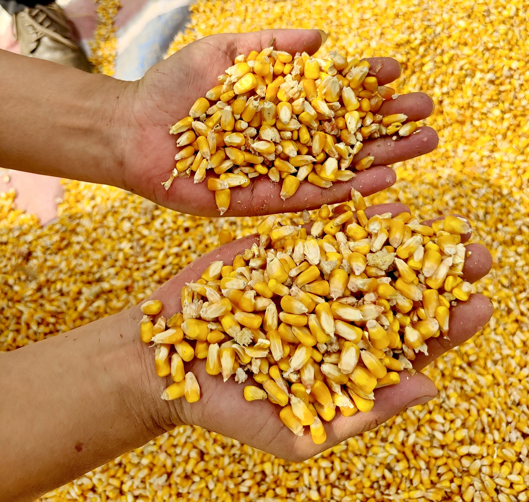 专用玉米割台收获的玉米籽粒匀净、破损少。