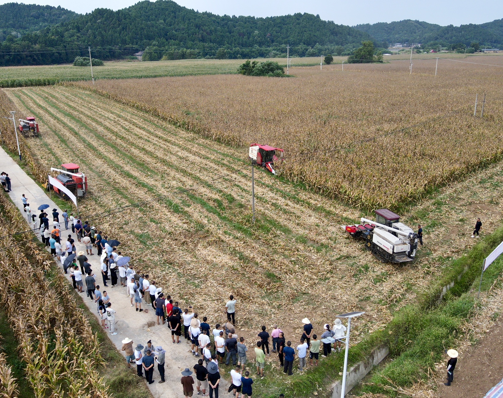 热浪翻滚的田间,十几分钟内,4台玉米收获机协同作业,5亩多成熟的玉米便被“颗粒归仓”——这是记者8月6日在中江县玉米机械粒收观摩会上看到的场景。随着四川2000多万亩春玉米陆续成熟,高效低损的机械化收获正成为保障粮食安全的关键。