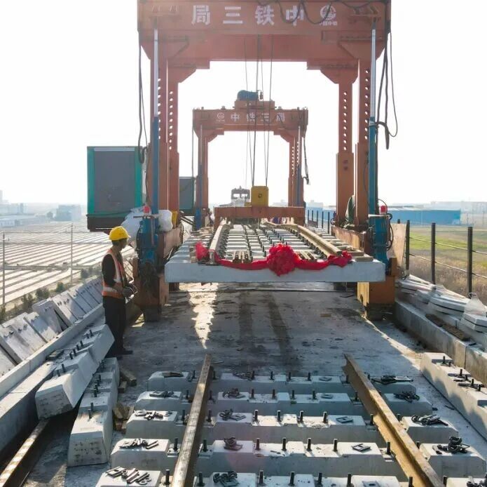 此次铺轨引进国内最先进的CP500Z本邻双线铺轨机组,具有铺设速度快、安全性能好、精度高等优势。“该机组能实现单线铺轨、跨线铺轨及左右线同时铺轨,单日最快单线铺轨进度可达9公里。按计划,全线铺轨任务将于今年10月底完成。”中铁一局铺轨工区经理杨波说。